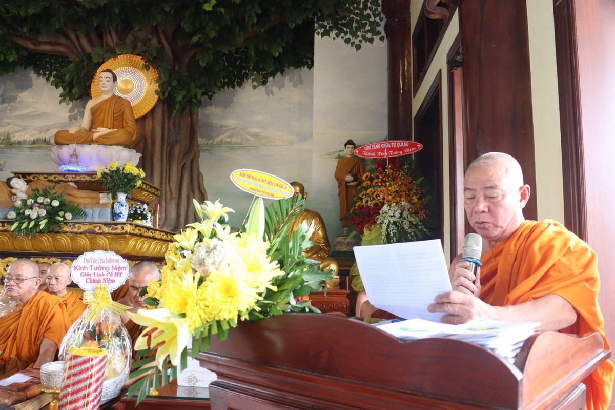 Ban đạo từ, HT. Thích Thiện Tâm tán thán công đức của cố HT. Thích Chánh Minh đã đóng góp cho Giáo hội và trong hệ phái, nhân dịp này nhắc nhở hàng môn đồ đệ tử phải tu hành tinh tấn để đền ơn thầy tổ.