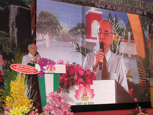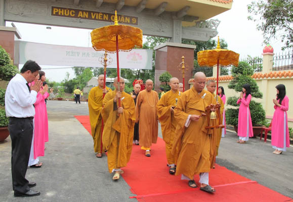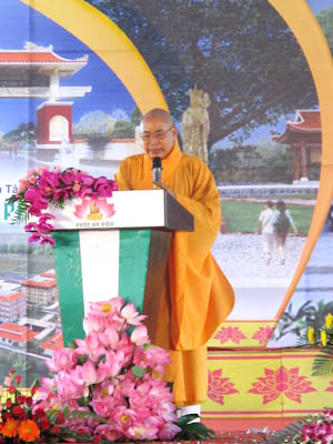 Cũng tại buổi lễ, HT Thích Thiện Nhơn – Phó Chủ tịch – Tổng thư ký HĐTS TW GHPGVN thay mặt cho Chư tôn Giáo phẩm Lãnh đạo các cấp Giáo hội xin chúc mừng Ban Tổng Giám Đốc công ty TNHH XD&KD nhà Điền Phúc Thành cùng các vị thành viên trong Ban Giám Đốc và Ban Quản Lý đầu tư xây dựng Công viên Văn hóa Tâm linh Phúc An Viên đã được thành tựu viên mãn và đi vào hoạt động, đạt kết quả hữu hiệu trong hiện tại và tương lai. Hòa thượng tán thán việc hình thành Công viên Văn hóa Tâm linh Phúc An Viên mang đậm tính linh thiêng của tôn giáo người Việt. Đây là một không gian lý tưởng cho những người đã khuất có được một chốn yên nghỉ thanh bình, điềm nhiên.