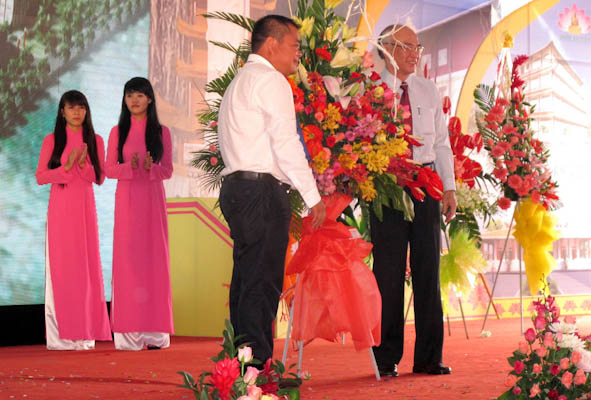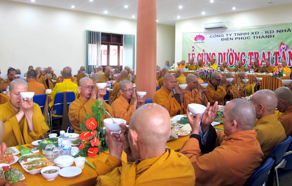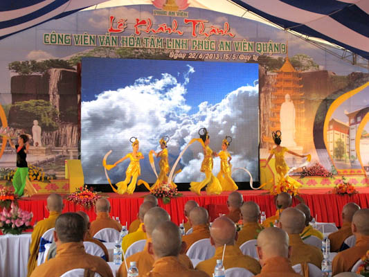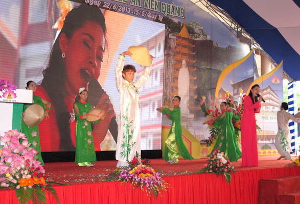 Sau cùng, quý vị đại biểu, quý quan khách và các Phật tử dùng bữa cơm trưa thân mật với Ban Tổ Chức; đồng thời thưởng thức một chương trình văn nghệ đặc sắc với sự biểu diễn của các ca sĩ nổi tiếng như Thụy Vân, Vũ Bảo, Đông Quân, Doãn Minh, v.v… Và nhóm múa minh họa Vũ đoàn Hải Âu./.