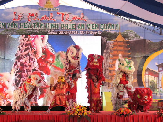 Ngoài ra, trong buổi Lễ Khánh Thành còn diễn ra lễ Cầu an, lễ An vị Phật tại khu Đền thờ, đặc biệt là nghi lễ Cúng dường Trai Tăng. Buổi lễ đã diễn ra trong sự nghiêm trang cùng với lời tác bạch thành kính của ông Nguyễn Minh Tâm – Tổng Giám đốc công ty và lời huấn từ rất đạo vị của HT Thích Huệ Cảnh – Trưởng BTS GHPGVN quận 9.