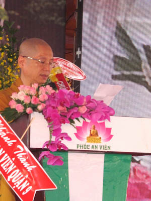 Sau lời đạo từ của HT Thích Thiện Nhơn, TT Thích Chân Quang thay mặt Ban Tổ Chức có đôi lời cảm tạ tri ân Chư tôn Hòa thượng Lãnh đạo Giáo hội, cùng Chư tôn thiền đức Tăng Ni từ nhiều nơi đã đến Phúc An Viên để chứng minh và cầu nguyện cho ngày Lễ Khánh Thành. Đồng thời Thượng tọa cũng gửi lời tri ân đến các cấp Lãnh đạo Chính quyền, quý quan khách, quý Phật tử đã đến tham dự góp phần cho buổi lễ thêm long trọng và đầy ý nghĩa. Sau cùng là lời cám ơn đến các Cơ quan truyền thông, Đài truyền hình, các trang Web Phật giáo đã đến tham dự và đưa tin.