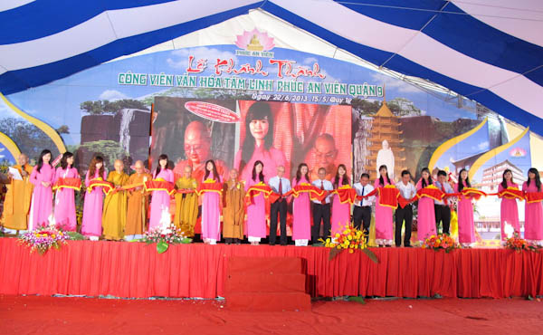 Tiếp theo, Đại diện chủ đầu tư, Đại biểu chính quyền, Đại diện GHPGVN tiến lên sân khấu thực hiện nghi thức cắt băng khánh thành. Sau đó, mọi người tham quan dự án theo sự hướng dẫn của chuyên viên công ty.