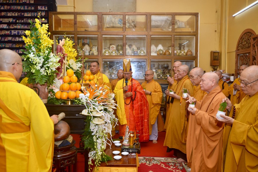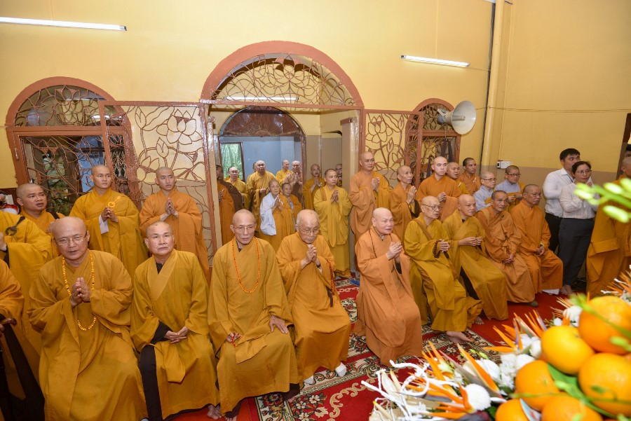Buổi lễ diễn ra trang nghiêm với sự chứng minh của chư tôn đức giáo Phẩm GHPGVN, BTS GHPGVN TP.HCM, BTS GHPGVN Q,3 cùng môn hạ của cố HT. Thích Thiện Tịnh