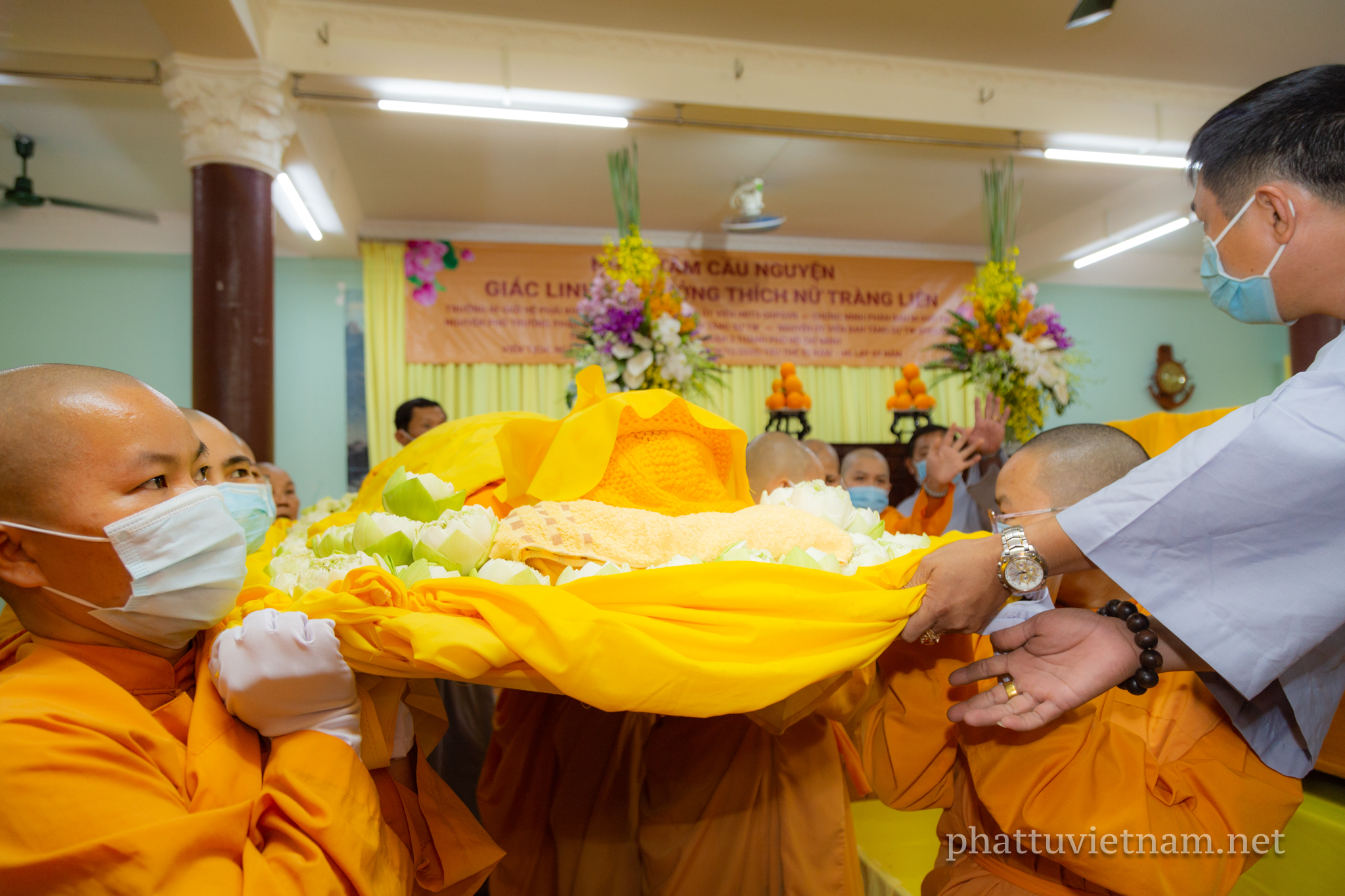 PTVN – Chiều nay, 15 giờ ngày 28/12, Ni giới hệ phái Khất sĩ và môn đồ đệ tử đã thành kính làm lễ thỉnh nhục thân cố Ni trưởng Thích Nữ Tràng Liên nhập kim quan tại tịnh xá Ngọc Phương (số 498/1 Lê Quang Định, P.1, Q.Gò Vấp) dưới sự chứng minh của chư tôn Giáo phẩm T.Ư GHPGVN và Hệ phái Khất sĩ.