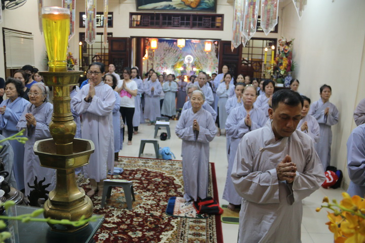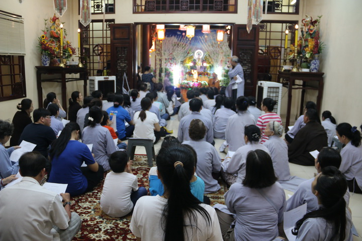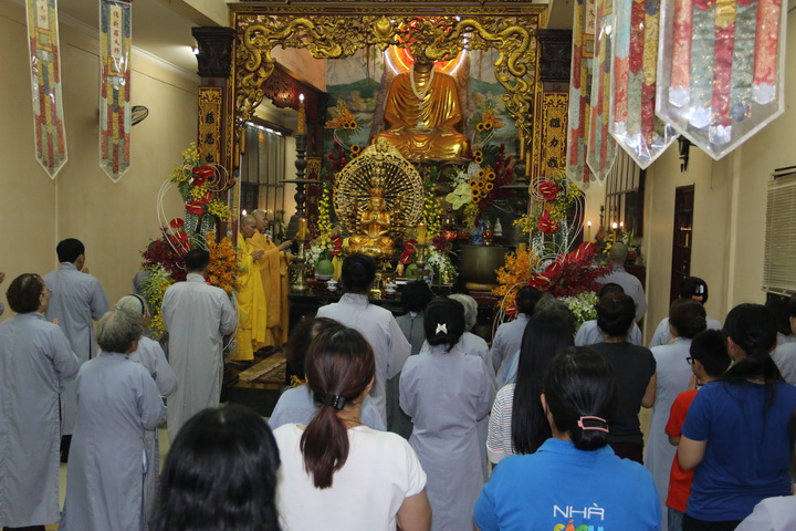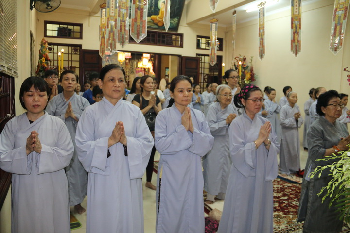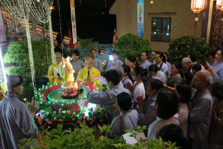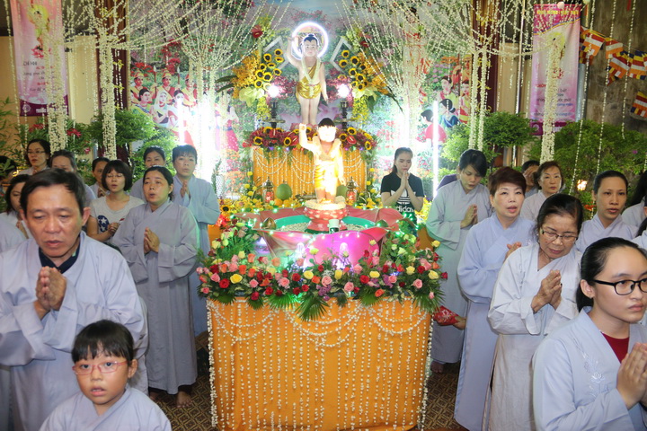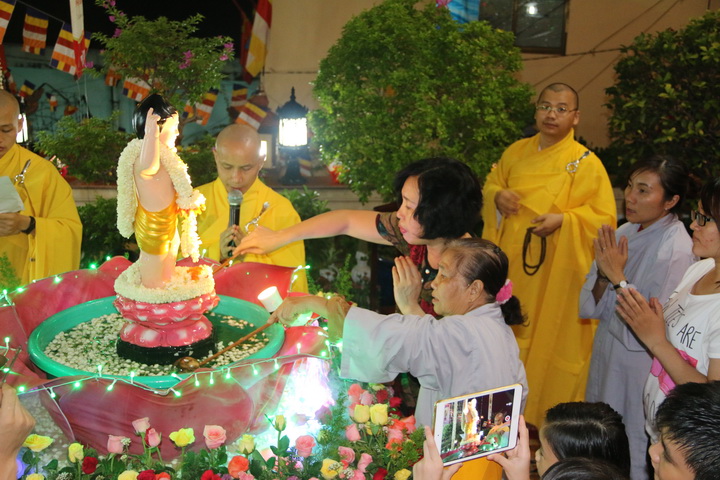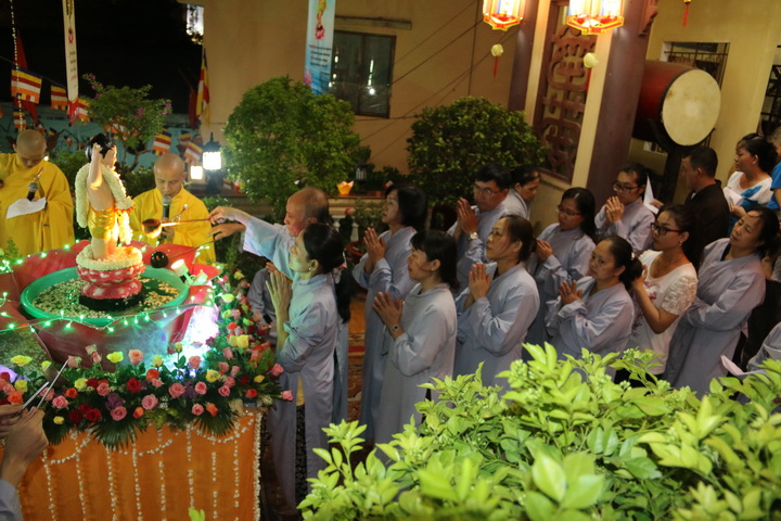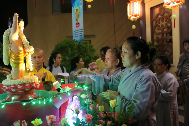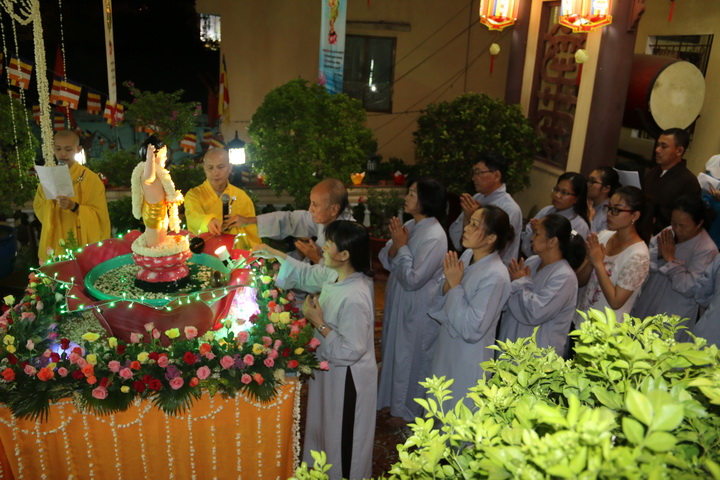 Buổi lễ diễn ra trong sự huân hoan của nam nữ Phật tử về tham dự, tất cả vận lòng thành, kết thành một đóa sen thành kính dâng lên cúng dường đức Phật Đản sanh và thầm nguyện sống theo tinh thần giáo huấn của Ngài trong từng tâm niệm.