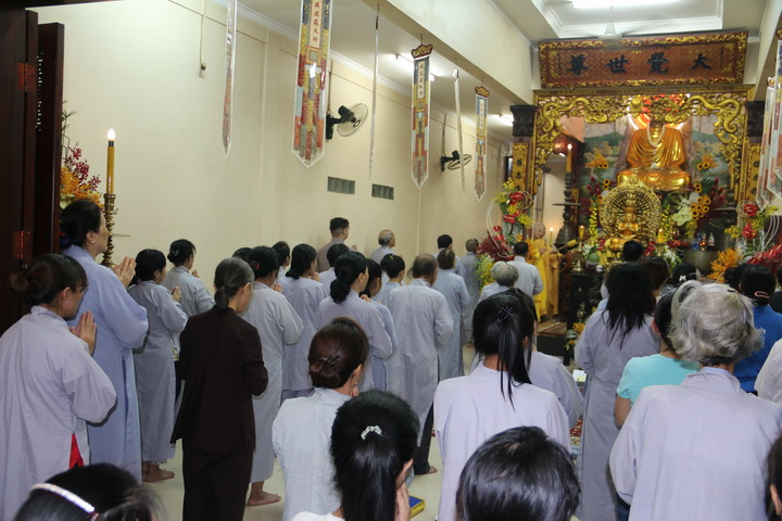 Chứng minh buổi lễ có sự hiện diện của chư Tăng tại bổn tự và nam nữ Phật tử từ các nơi về tham dự.