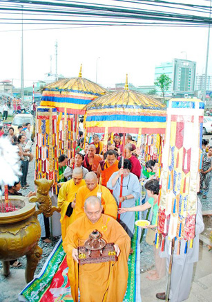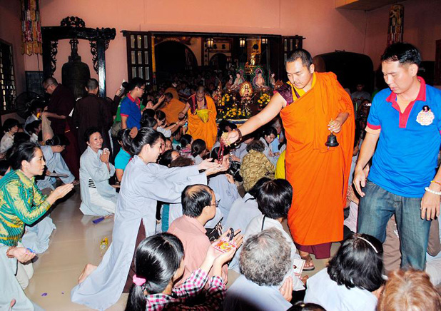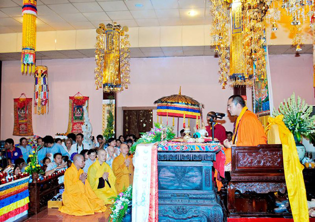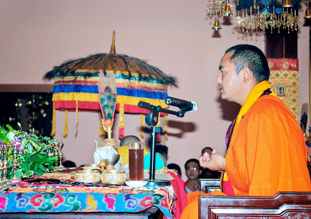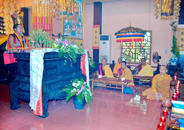 Trong tiếng âm thanh trầm hùng của nhạc khí Kim Cương Thừa, Đức Nhiếp Chính Vương cùng chư Tăng dòng truyền thừa Drukpa, đã cử hành lễ truyền quán đảnh và nghi quỹ tu trì pháp môn về Đức Phật Dược Sư đến đại chúng. Đầu tiên là trì tụng bài kệ Quy y Tam Bảo: Quy y Phật, Quy y Pháp, Quy y Tăng. Tiếp theo, Đức Nhiếp Chính Vương hướng dẫn đại chúng phát Bồ đề tâm cầu giác ngộ phát triển từ bi và trí tuệ hướng đến sự giải thoát. Kế đến là lễ dâng vật phẩm cúng dường Tam Bảo, dưới sự chứng minh của Đức Nhiếp Chính Vương và chư vị trong dòng truyền thừa.