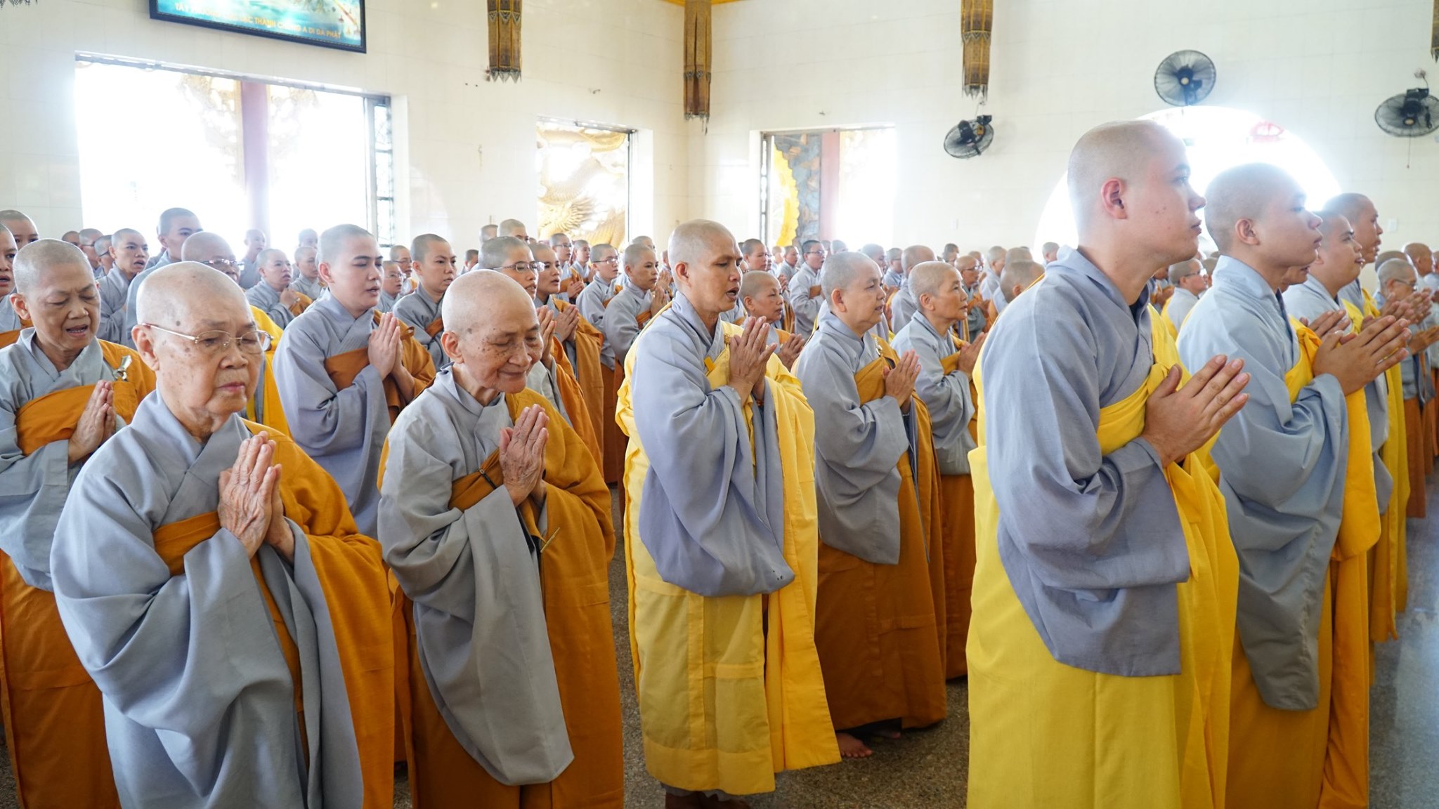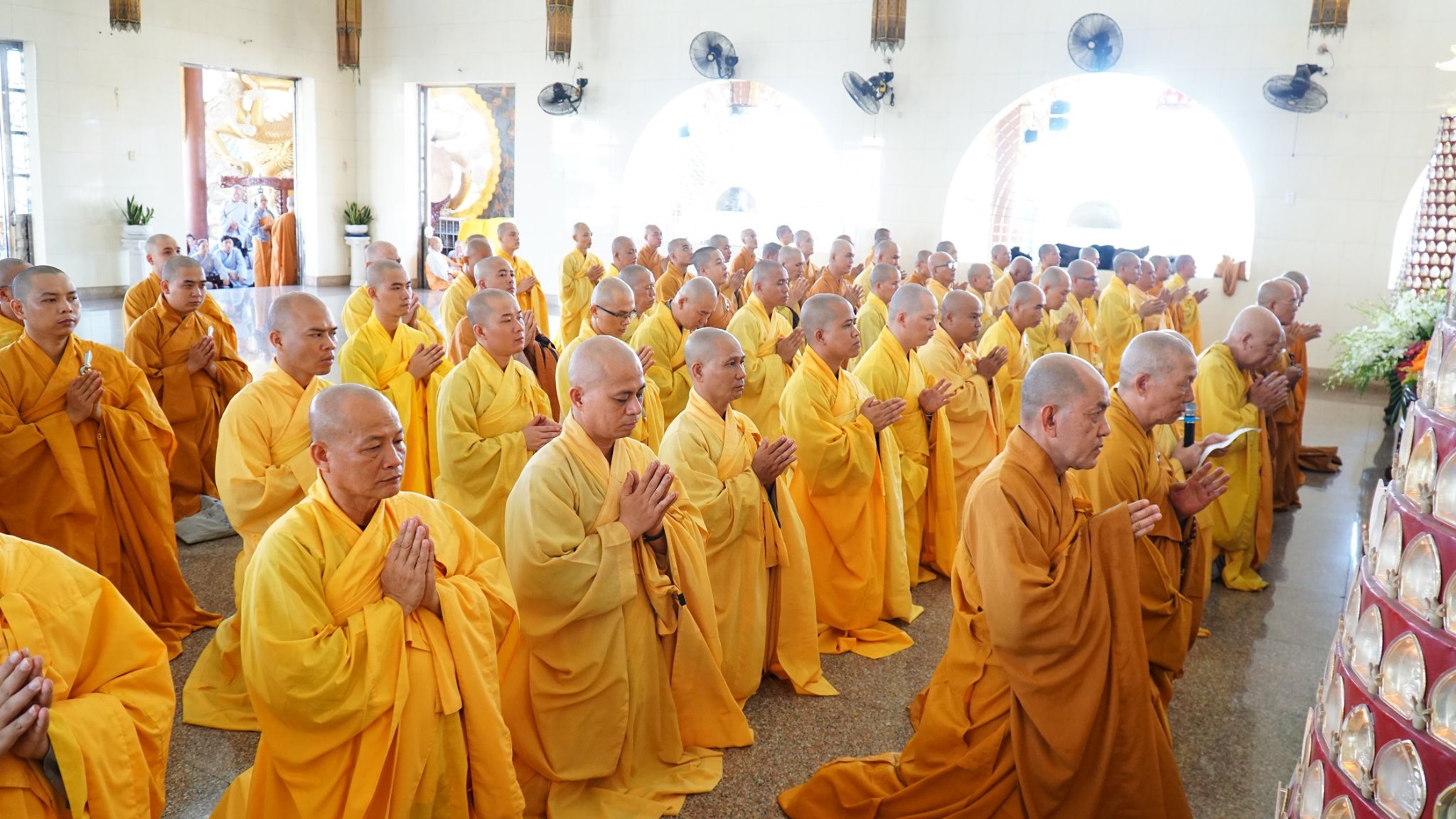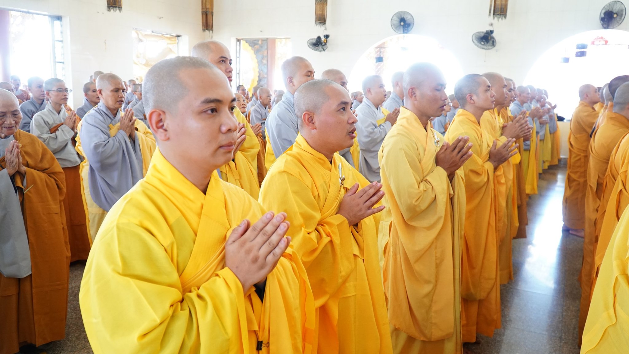 Tại buổi lễ, chư Tôn đức Thường trực BTS, chư Hành giả trường Hạ chùa Vạn Đức và chư Tôn đức Tăng Ni trực thuộc đạo tràng Vạn Đức đã trang nghiêm niêm hương bạch Tổ, bạch Phật và thực hiện nghi thức Tác pháp an cư.