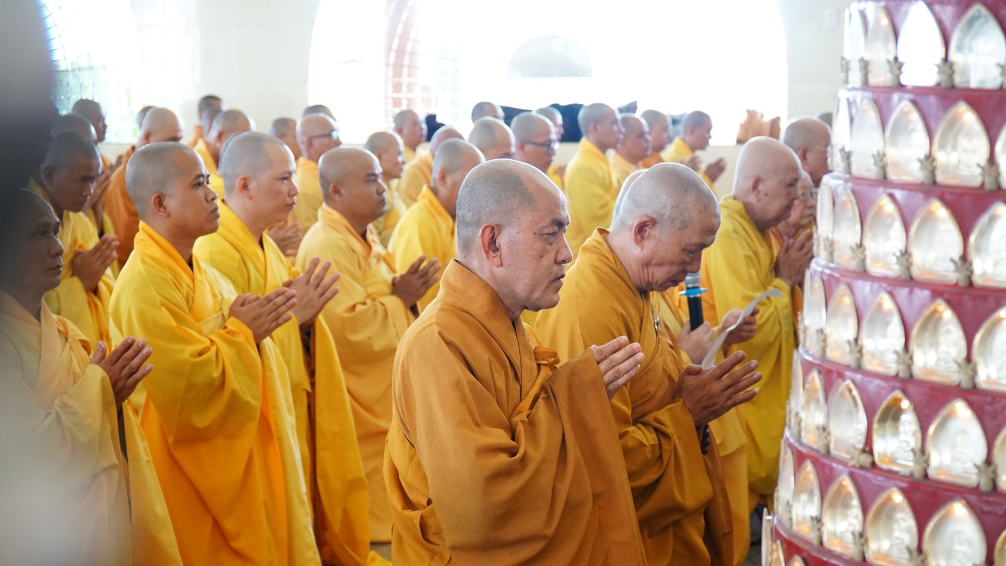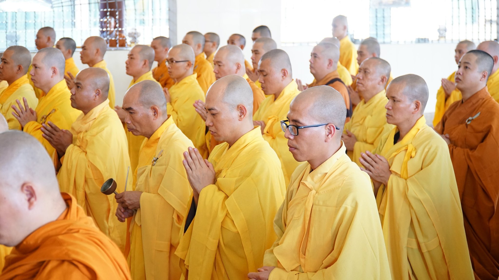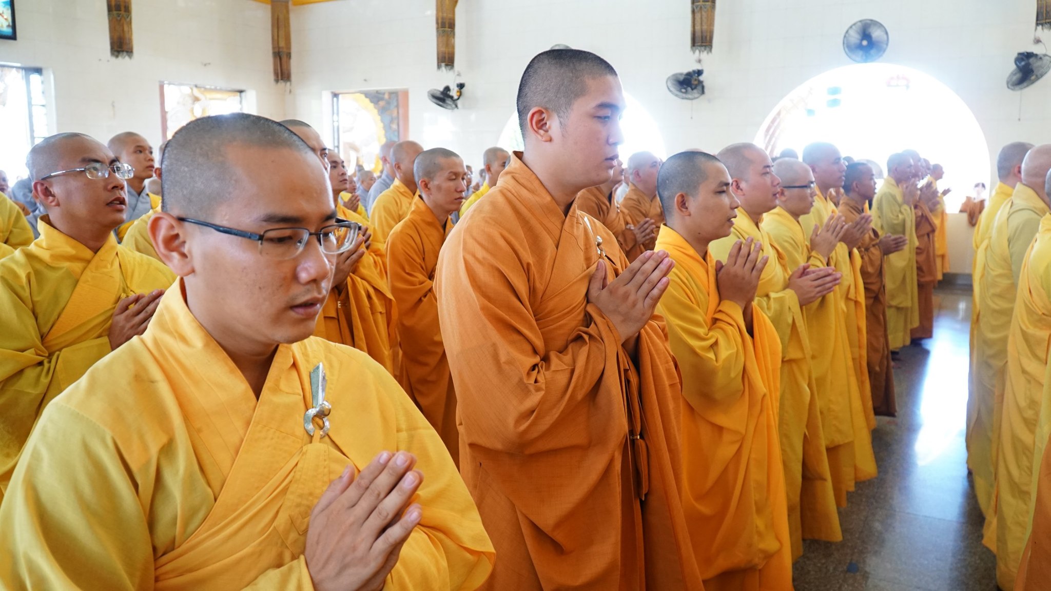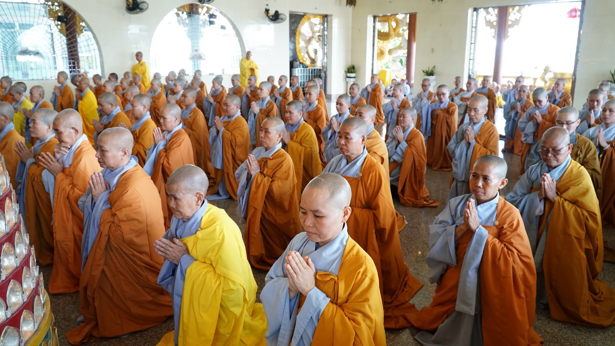 Tại buổi lễ, chư Tôn đức Thường trực BTS, chư Hành giả trường Hạ chùa Vạn Đức và chư Tôn đức Tăng Ni trực thuộc đạo tràng Vạn Đức đã trang nghiêm niêm hương bạch Tổ, bạch Phật và thực hiện nghi thức Tác pháp an cư.