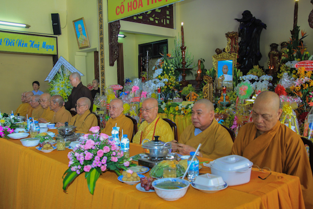 Tai buổi lễ, Môn phái Chúc Thành và Môn đồ đệ tử đã trang nghiêm thiết lễ Trai Tăng cúng dường mười phương chư Phật và hiện tiền Chư tôn giáo phẩm chứng minh, chư tôn đức Tăng Ni nhằm hồi hướng công đức cho cố Hòa thượng cao đăng Phật quốc.
