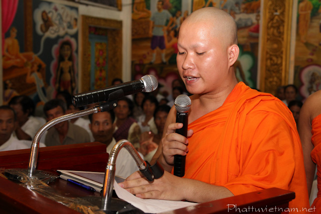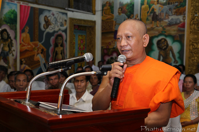 Tiếp theo chương trình, đại chúng trang nghiêm và thanh tịnh lắng nghe lời đạo từ quý báo của HT. Thích Thiện Nhơn. Trước tiên Hòa thượng gởi lời chúc mừng đến TT. Danh Lung vừa được nhận 2 chức vụ mới. Tiếp theo Hòa thượng có nhắc lại sự hình thành và xây dựng ngôi chùa Cadaransi, đây là ngôi chùa dưới sự hướng dẫn của cố Hòa thượng khai sáng đã có công trong công cuộc kháng chiến dành độc lập của dân tộc Việt Nam, cũng như hướng dẫn Sư sãi và Phật tử đồng bào dân tộc Khmer tu học theo chánh pháp của Như Lai. Tiếp theo con đường phụng sự Tam Bảo và chúng sanh của chư tổ, TT. Danh Lung đã đem tâm sức và nhiệt huyết 18 năm hết lòng cho việc xây dựng ngôi bổn tự Cadaransi vô cùng quy mô để hướng dẫn Phật tử tu học, cũng như làm trang nghiêm Giáo hội. Cuối cùng Hòa thượng nhắc nhở và trông cậy ở Thượng tọa tân trụ trì và chư tăng bổn tự luôn hết lòng tinh tấn hướng dẫn và xây dựng một cộng đồng Phât tử người Khmer sống đúng theo tinh thần Phật pháp.