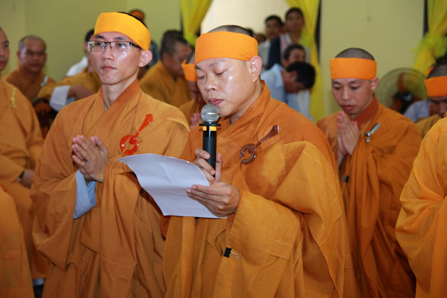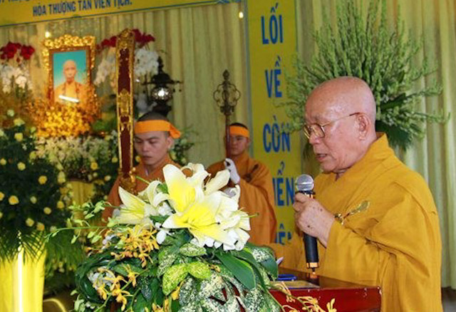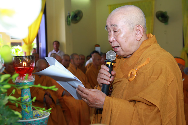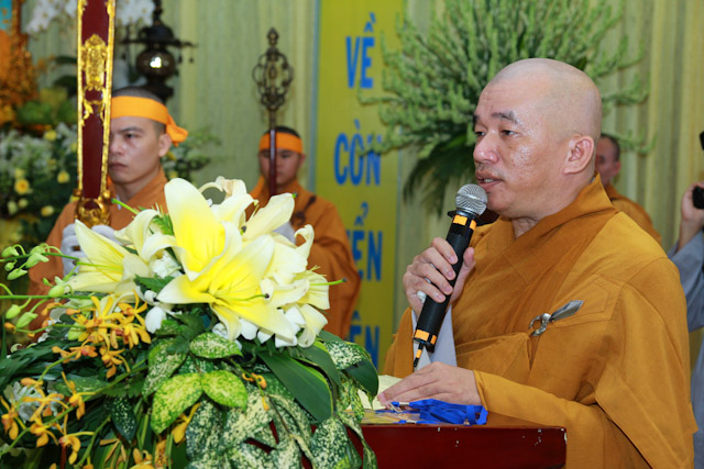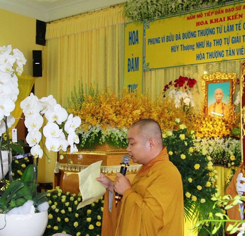 HT. Thích Như Tín, Phó Ban Trị sự GHPGVN TP.HCM, Trưởng Ban Điều hành Môn phái Lâm tế Chúc Thánh, Phó Ban Tổ chức Tang lễ đại diện môn phái Lâm tế Chúc Thánh đọc lời tưởng niệm.