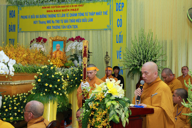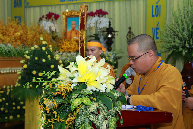 ĐĐ.Thích Nhật Thiện, Phó Thường trực Ban Trị sự GHPGVN quận 10, Phó Ban Tổ chức tang lễ đọc lời cảm tạ tri ân chư Tôn đức lãnh đạo BTS GHPGVN TP.HCM, các quận, huyện cùng quý vị lãnh đạo các cấp chính quyền và đồng bào Phật tử đã đến thắp hương tưởng niệm Giác linh cố Hòa thượng trong những ngày qua.