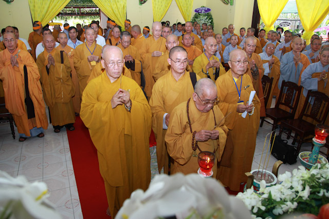Lễ tưởng niệm, cung tống kim cố Hòa thượng diễn ra dưới sự quang lâm chứng minh của HT.Thích Hiển Tu, Phó Thư ký HĐCM; HT.Thích Tịnh Hạnh, HT.Thích Như Niệm, HT.Thích Như Tín – Phó BTS GHPGVN TP.HCM, chư Tôn đức đại diện BTS GHPGVN TP.HCM, các Ban ngành trực thuộc GHPGVN TP.HCM, chư Tôn đức BTS PG 24 quận, huyện cùng đông đảo Phật tử đồng về tham dự.