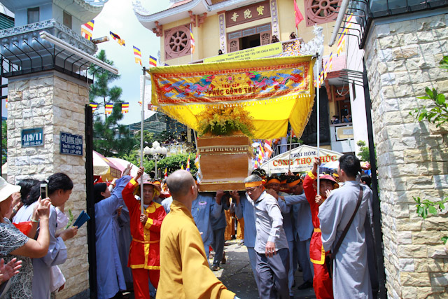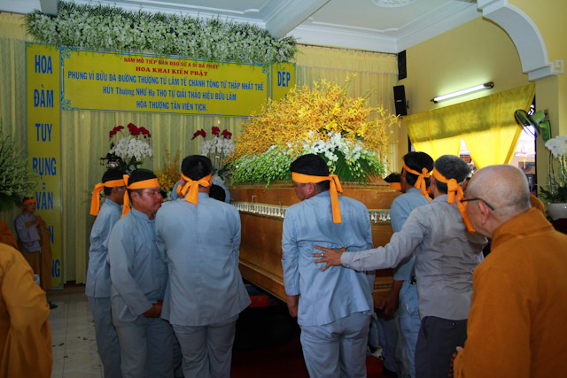 Sau lễ tưởng niệm, Ban Nghi lễ GHPGVN TP.HCM cử hành lễ di quan, theo đó kim quan cố Hòa thượng được phụng tống về Tổ đình Cổ Lâm (huyện Đại Lộc, tỉnh Quảng Nam), sau đó nhập bảo tháp trong khuôn viên Tổ đình Cổ Lâm vào lúc 11 giờ 30 ngày 30/9/2014 (7/9 Giáp Ngọ)