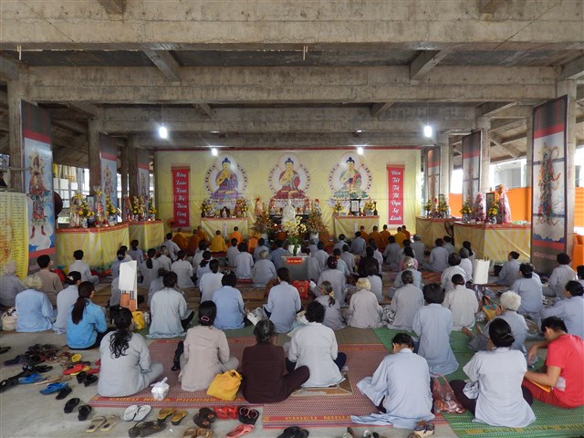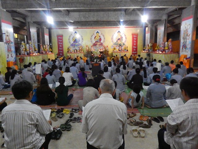 Từ lúc 4h sáng, chư Tăng chùa Hải Quang đã làm lễ công phu khuya, theo đó là khóa lễ lạy 500 lễ hồng danh và hạnh nguyện đức Bồ tát Quán Thế Âm. Dù thời gian hành lễ của chư Tăng và Phật tử kéo dài đến hơn 9h sáng, nhưng đại chúng đều có tinh thần phấn chấn như nhận được lực gia trì mạnh mẽ của đức Quán Thế Âm bồ tát. “ Được cùng quý Thầy lạy ngũ bách danh đức Quán Thế Âm Bồ tát từ lúc 5h sáng đến 9h30, chúng con chẳng thấy mệt mà lại thấy rất vui khỏe, hạnh phúc lắm thầy ạ” – Phật tử N.V.A tâm sự.