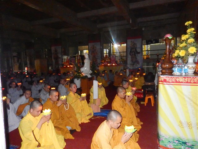Buổi tối, Thượng tọa trụ trì chùa Hải Quang đã làm lễ vía tưởng niệm thánh đản đức Quán Thế Âm bồ tát, dẫn dắt đại chúng tụng đọc từng câu kinh, niệm hồng danh Nam Mô Bồ Tát Quán Thế Âm, đi sâu vào những cung bậc trầm lắng của tiềm thức, nội tại. Mọi người đều nghe thượng tọa đọc lời cảm niệm hạnh nguyện đức Quán Âm, tác lễ bạch Quán Âm Bồ tát cứu độ, cùng dâng nến cầu phúc, nhớ tưởng đến hình ảnh cứu độ chúng sinh của đức Bồ tát Quán Thế Âm. Điều mà lòng người luôn khát khao, trông đợi hào quang của Bồ tát Quán Thế Âm chiếu soi trong tâm hồn của mọi người.