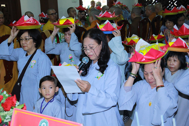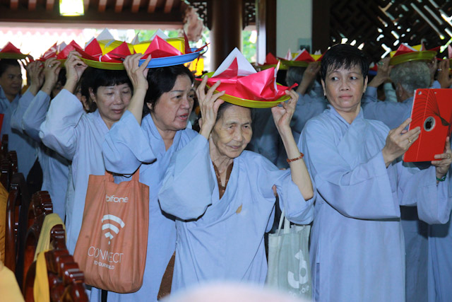 Tại buổi lễ, trong không khí thiêng liêng và lắng động khi mùa Vu Lan trở về, Phật tử chùa Linh Chưởng đã cử hành nghi thức cài bông hồng lên chư tôn đức Tăng,Ni chứng minh và đạo tràng hiện diện.