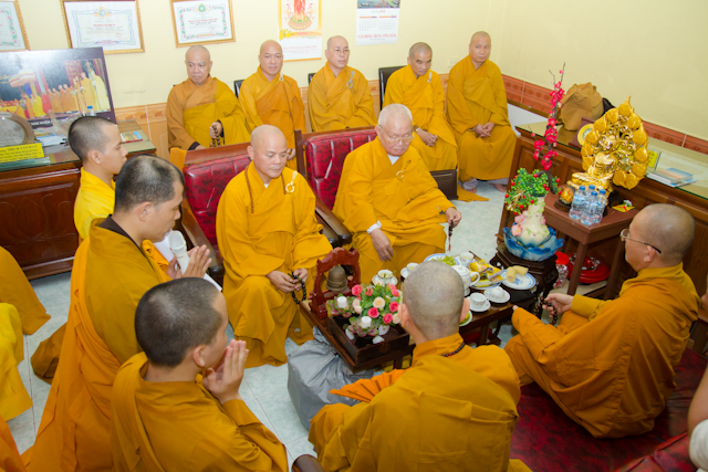 Quang lâm chứng minh và tham dự buổi lễ có: HT.Thích Tấn Đạt – UV TT HĐTS – Phó VP 2 T.Ư Giáo hội – Phó ban TT Ban hoằng pháp T.Ư, HT.Thích Thanh Hùng – UV TT HĐTS – Phó TT Ban HDPT T.Ư – Phó Ban hoằng pháp T.Ư, HT.Thích Minh Thiện – Phó ban hoằng pháp T.Ư – Trưởng BTS PG tỉnh Long An. TT. Thích Huệ Thông – Ủy viên thư ký HĐTS – Phó pháp hoằng pháp T.Ư – Trưởng BTS PG tỉnh Bình Dương, cùng chư tôn đức thường trực Ban hoằng pháp T.Ư, các tỉnh thành và 200 Tăng Ni sinh 2 lớp cao trung cấp giảng sư đồng về mừng khánh tuế.