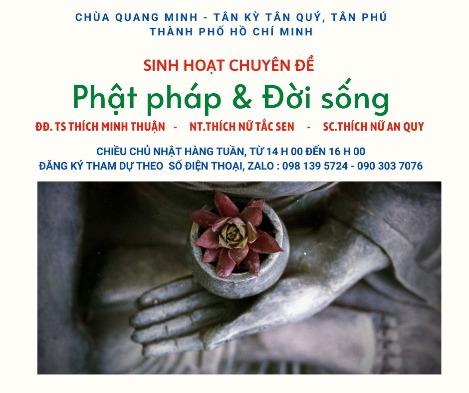 Lớp giáo lý Phật pháp & đời sống do ĐĐ.Thích Minh Thuận – Tiến sĩ Giáo Dục Học là giáo thọ, trực tiếp hướng dẫn đã bắt đầu sinh hoạt lại bình thường vào lúc 14 h00 chiều ngày chủ nhật 24/05 tại chùa Quang Minh, Q.Tân Phú.