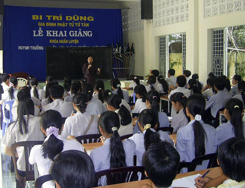 TT.Thích Viên Giác trong giờ đứng lớp với các bạn đòan sinh