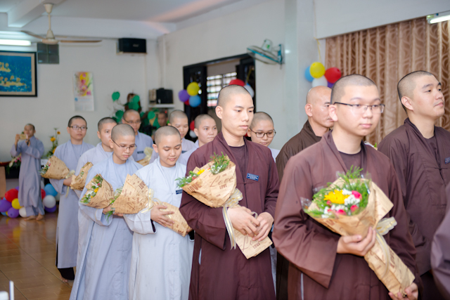 Sau lời cảm tưởng, để tiếp tục thể hiện tấm lòng tri ân của mình Tăng Ni sinh đã dâng lên cúng dường những bó hoa đến chư tôn đức Ân sư. Sau đó, trình bày báo tường, Tăng Ni sinh lần lượt thể hiện tình cảm qua những bài văn, bài thơ hết sức mộc mạt, những tran chứa tình cảm của người họ trò khi nghĩ về công lao to lớn của người thầy, người cô từng ngày dẫn dắt, truyền trao tri thức Phật Pháp cho bao thế hệ hậu học.