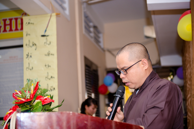 Bước vào chương trình lễ, ĐĐ.Thích Thiện Châu đã thay mặt Ban chủ nhiệm LSCPG quận 3 phát biểu khai mạc buổi lễ.