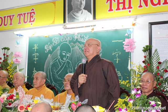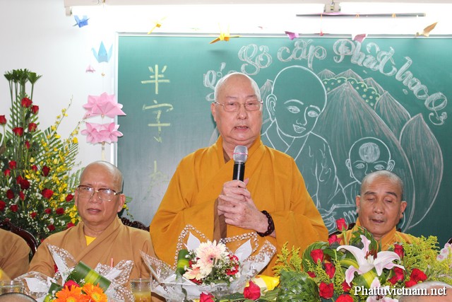 Phát biểu khai mạc ĐĐ. Thích Thiện Châu – Phó Thư ký kiêm phó VP Ban Kiểm soát TW, Chánh Thư ký BTS GHPGVN Q.3 nhấn mạnh; “Nghề dạy học là trong những nghề cao quý nhất, nghề sáng tạo nhất trong những nghề sáng tạo”. Nhân loại đã thừa nhận vai trò của người thầy sánh cùng người mẹ. cha mẹ sanh thân chỉ một đời mà ân còn cao quý. Đức tôn sư huấn dục muôn kiếp thoát tử sanh, ngôn từ nào diễn tả được.