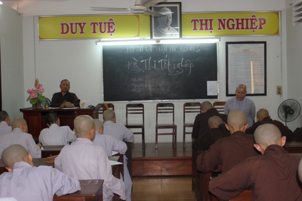 Trong đó có 63 Tăng Ni sinh được chính thức thi tốt nghiệp và 04 Tăng Ni sinh không đủ tiêu chuẩn tham dự kỳ thi. Đây là khóa thứ 9 do Ban trị sư GHPGVN Q.3 tổ chức và hạ tuần tháng 4 – 2013 Ban chủ nhiệm sẽ tổ chức lễ phát chứng chỉ tốt nghiệp khóa 9 và đồng thời khai giảng khóa 10 – 2013.
