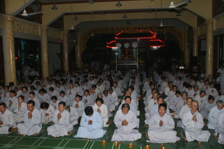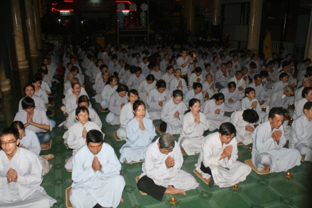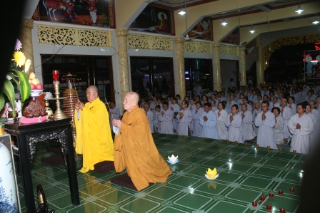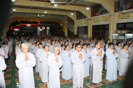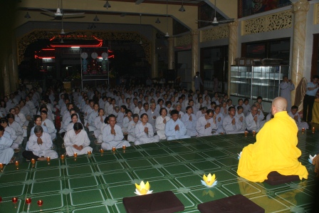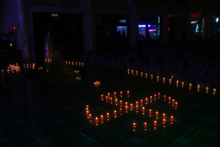 Quang lâm chứng minh có Thượng Toạ Thích Thiện Hoà- Phó Ban Thường Trực Ban Trị Sự GHPGVN Quận Tân Phú-Trụ Trì Chùa Long Hưng-Trưởng Ban Tổ Chức,Đại Đức Thích Quảng Tiến- Phó Thư ký kiêm chánh văn phòng ban hướng dẫn Phật tử TW, Ủy viên thường trực Ban hoằng pháp TW, Trụ trì chùa Thiên Chánh cùng với hơn 500 phật tử về tham dự. Đêm hội được bắt đầu vào lúc 18h, sau khi Thượng Toạ Thích Thiện Hoà đọc diễn văn khai mạc, tiếp theo là nghi thức truyền đăng.Chư Tôn đức cùng đại chúng đồng cầm nến trên tay, trang nghiêm thành kính hướng về tôn tượng của đức Phật, cùng thắp sáng lên ánh sáng Trí Tuệ, Từ Bi soi chiếu vào dòng đời, để phá tan màn vô minh si ám; ngọn nến của hiểu biết, lan toả khắp tất cả,để cuộc sống tình người ngày một cảm thông hơn.Trong ánh sáng của những ngọn nến lung linh huyền ảo, toàn thể đạo tràng cùng hoà chung trong 48 đại nguyện của Đức Phật A Di Đà do ĐĐ Thích Quảng Tiến khởi xướng.Từng lời kinh trầm bổng như xóa tan đi vòng vô minh đêm tối, dẫn bước chúng sanh trở về với thực tại, qua âm thanh du dương của từng câu Phật hiệu A Di Đà Phật của đại chúng:
