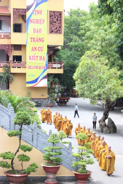 Vào các ngày trưỡng tịnh Bố tát (29 (tháng thiếu), 30 và 15) chư Tăng tại các trụ xứ trong thành phố và gần 200 nam nữ Phật tử cũng trở về hạ trường để cùng tụng giới.