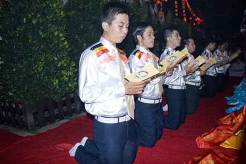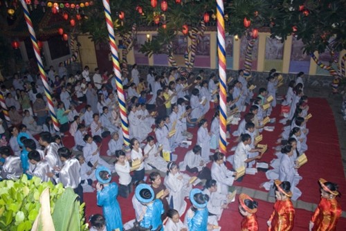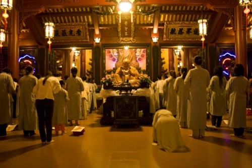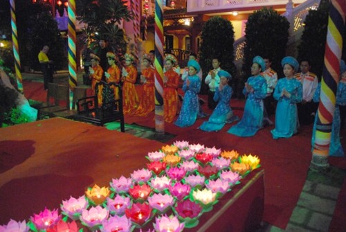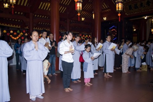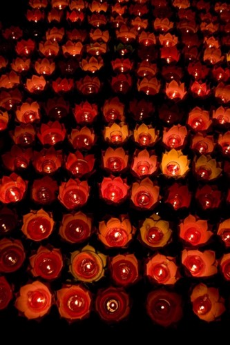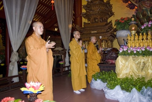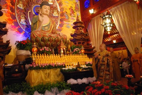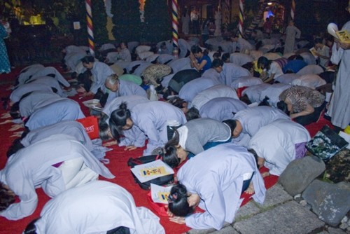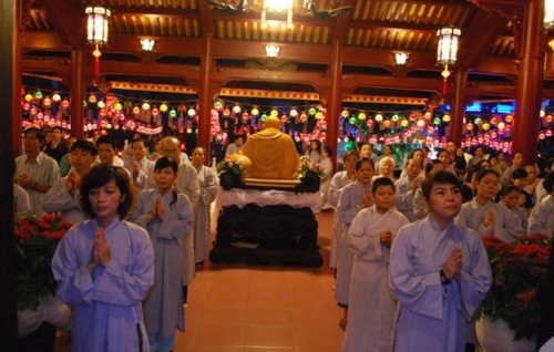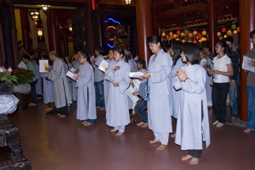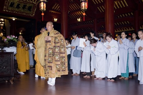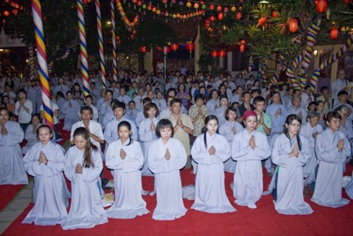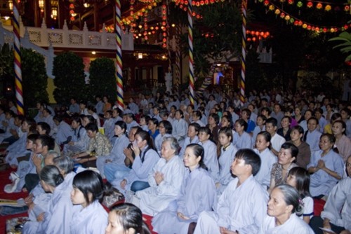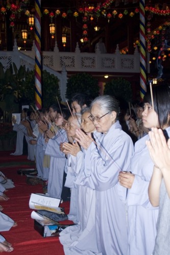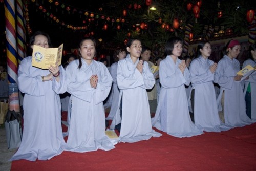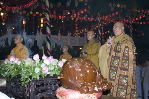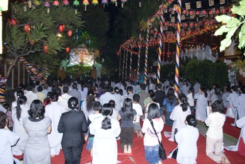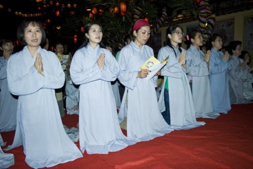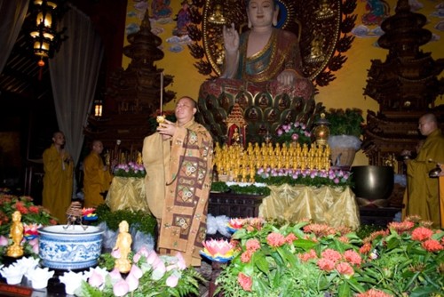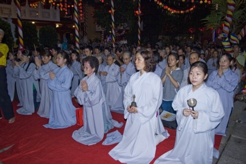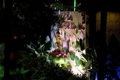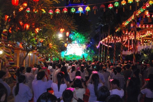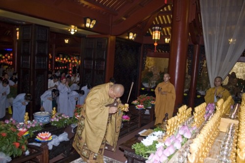 Tiếp theo, trong ánh sáng lung linh huyền diệu, chư tăng và phật tử tại đạo tràng đã thắp hoa đăng cúng dường lên Đức Phật nguyện cầu nguyện thế giới hòa bình, chúng sinh an lạc.