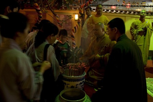 Khúc ca "Trầm hương đốt" được vang lên thì cũng là lúc phật tử tại đạo tràng dâng hương lên cúng dường chư Phật mười phương với tâm thành kính thiết tha. Sau đó, các phật tử lần lượt dâng lên những cành sen tươi thắm cúng dường Đức Thích Ca Mâu Ni nhân ngày đản sanh của Ngài.