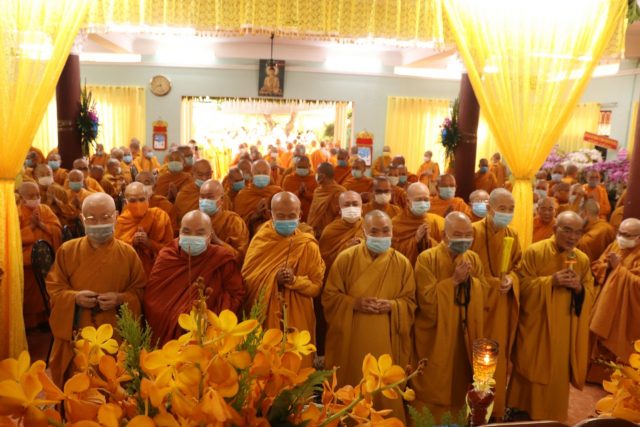 Sau Lễ truy niệm, Chư tôn Giáo phẩm HĐCM, HĐTS, Ban Viện TƯ, BTS quận Gò Vấp, quận 3, cùng chư Tôn đức Tăng Ni đối trước Linh đài và cầu nguyện Giác linh cố Ni Trưởng cao đăng Phật quốc.