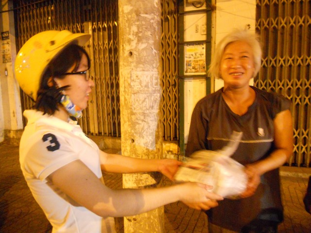 Chương trình tặng quà cho những người vô gia cư được triển khai đến 0h30 sáng. Các thành viên tuy có thấm mệt nhưng vẫn nở những nụ cười rạng rỡ trên môi, vì biết được mình vừa làm một việc làm có ý nghĩa, dù nhỏ nhưng đã thể hiện được một chút gì đó “Thương người như thể thương thân”.