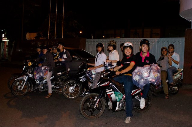 Trước đó, 21h mọi người tập trung tại địa điểm tòa nhà Waseco số 10 Phổ Quang để phân chia quà, sau các tiết mục sinh hoạt giao lưu. 11 chiếc xe đầu tiên đã xuất phát mang những món quà gồm: Mì gói, khăn tay, sữa, dầu nóng, quần áo cũ, nước ngọt, bánh. Tất cả đã được chuyển đến cho hơn 100 người vô gia cư tại Quân Tân Bình và các quận lân cân thuộc Tp. Hồ Chí Minh.
