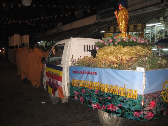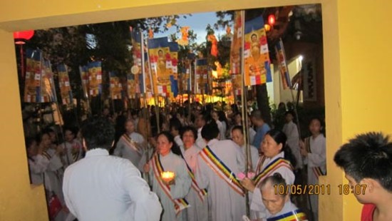 Từ việc dựng lễ đài, đến việc diễu hành xe hoa mừng Phật đản vào tối ngày 10/5, trong đó có lễ tắm Phật, tụng kinh, thuyết giảng kéo dài từ 8/5 đến 16/5/2011.