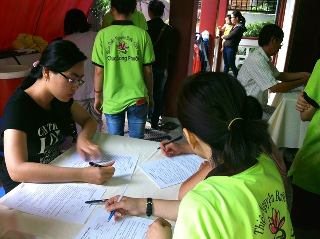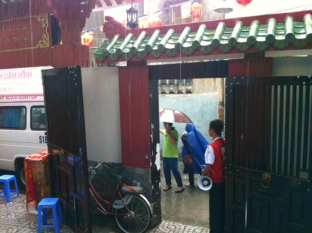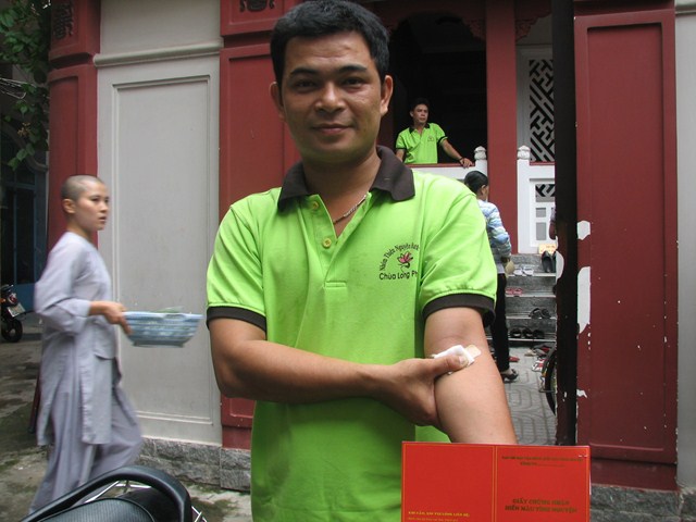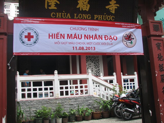 Cơn mưa tầm tã buổi chiều ngày 11/08 vẫn không ngăn được bước chân của gần 100 tình nguyện viên, Phật tử và thành viên nhóm Thiện nguyện Bước Chân Sen tham gia hiến máu nhân đạo mừng đại lễ Vu Lan 2013. Chứng kiến sự nhộn nhịp nơi khuôn viên nhỏ bé của Chùa và những nụ cười hoan hỷ của mọi người trong cơn mưa nặng hạt mới thấy hết được tấm lòng từ bi noi gương đức Từ Phụ của những người con Phật tại chùa Long Phước. Một bạn gái chia sẻ cảm giác lần đầu tiên hiến máu cho biết: Chưa bao giờ bạn lại tưởng tượng mình lại có thể can đảm nhìn Y tá rút máu của mình nhưng chính năng lượng và sự hộ trì của Phật Pháp mà bạn đã vượt qua nỗi sợ hãi một cách nhẹ nhàng.