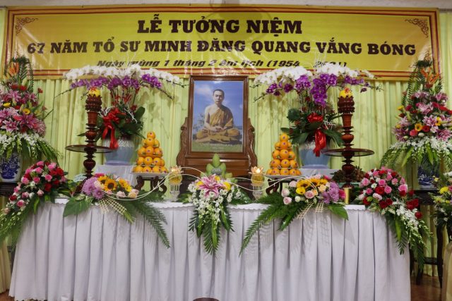 Sáng ngày 13/03/2021 (nhằm mùng 01/02 Tân Sửu) tại Tổ đình Tịnh xá Ngọc Phương (498/1 Lê Quang Định, P1, Q.Gò Vấp) đã trang nghiêm tổ chức Lễ Tưởng niệm 67 năm đức Tổ sư Minh Đăng Quang vắng bóng.