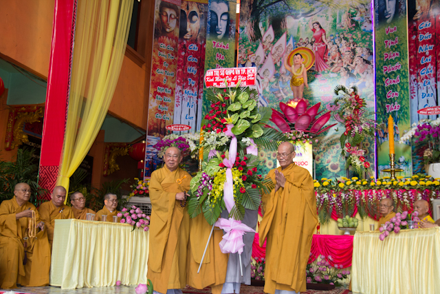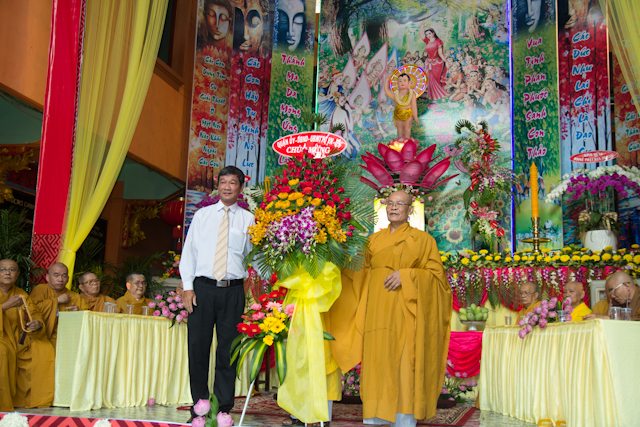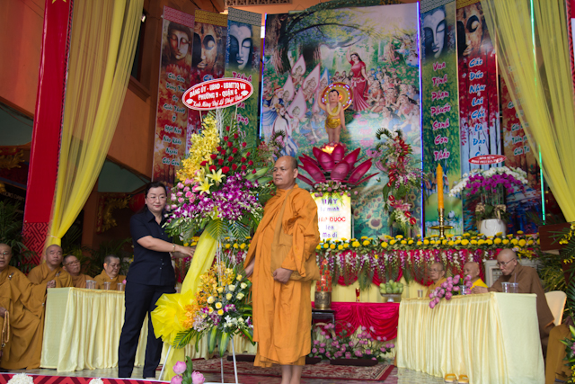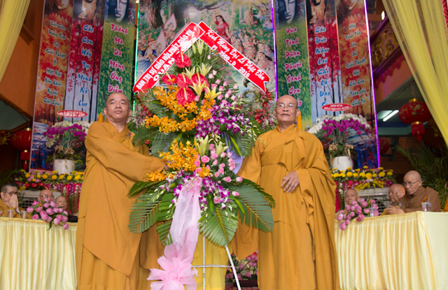 Đến chúc mừng Phật Đản, Ban tổ chức đã đón nhận nhiều lẵng hoa từ BTS PG TP.HCM, Quận ủy, UBND, UBMTTQ quận 6 và phường sở tại.