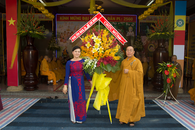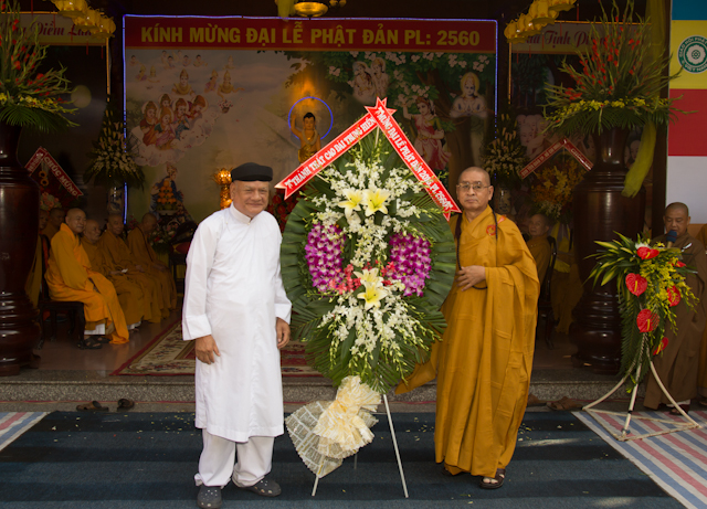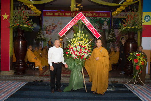 Đến chúc mừng Phật Đản, Ban tổ chức đã đón nhận nhiều lẵng hoa từ BTS PG TP.HCM, Quận ủy, UBND, UBMTTQ quận Tân Bình và phường sở tại.