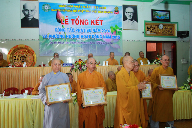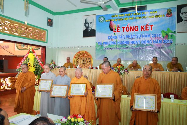 Trước những thành tựu các công tác Phật sự và từ thiện xã hội của toàn thể Tăng,Ni, Phật tử Q.6. Thường trực BTS PG TP.HCM đã quyết định trao 06 bằng tuyên dương công đức và 24 bằng công đức cho các Cá nhân và Tập thể xuất sắc trong công tác Phật sự năm 2014.