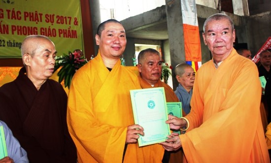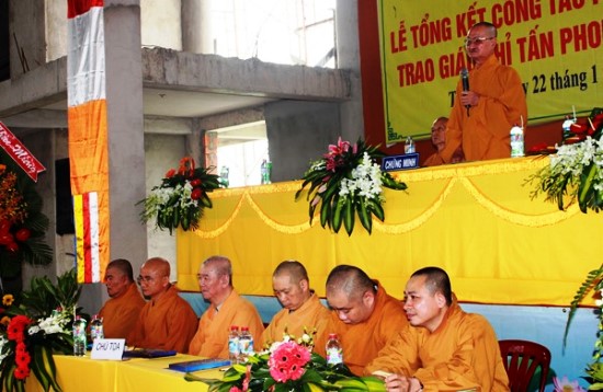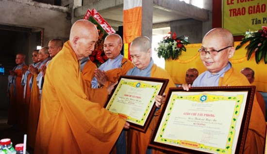 Dịp này, BTS cũng vinh danh chư tôn đức Tăng Ni được tấn phong lên hàng giáo Phẩm chứng minh. TT.Thích Quang Thạnh – Phó thư ký kiêm Chánh văn phòng BTS GHPGVN TP.HCM đã tuyên đọc quyết định tấn phong giáo phẩm của Ban Thường trực HĐCM tại Đại hội đại biểu Phật giáo toàn quốc lần VIII. Phật giáo Quận Tân phú gồm có: 1 vị Thượng tọa tấn phong giáo phẩm Hòa thượng, 1 vị Đại đức tấn phong giáo phẩm Thượng tọa, 5 vị Ni sư tấn phong giáo phẩm Ni trưởng, 3 vị Sư cô tấn phong giáo phẩm Ni sư.