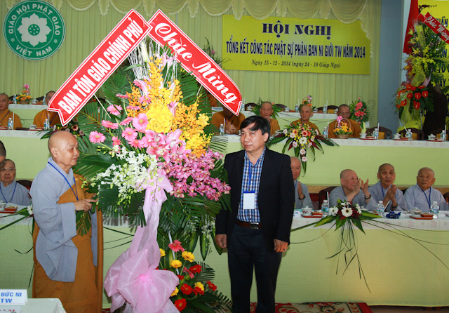 Đại diện lãnh đạo nhà nước, Ô.Nguyễn Ngọc Phong – Phó chủ tịch UBMTTQ TP.HCM đã gởi lời chúc mừng thành công trong Phật sự năm 2014 của PBNG TW. Ông cũng chân thành cảm ơn Chư tôn đức Ni đã phối hợp cùng nhà nước thực hiện tốt các công tác từ thiện xã hội, giáo dục và hướng dẫn tín đồ Phật tử thành người công dân tốt cho đất nước.