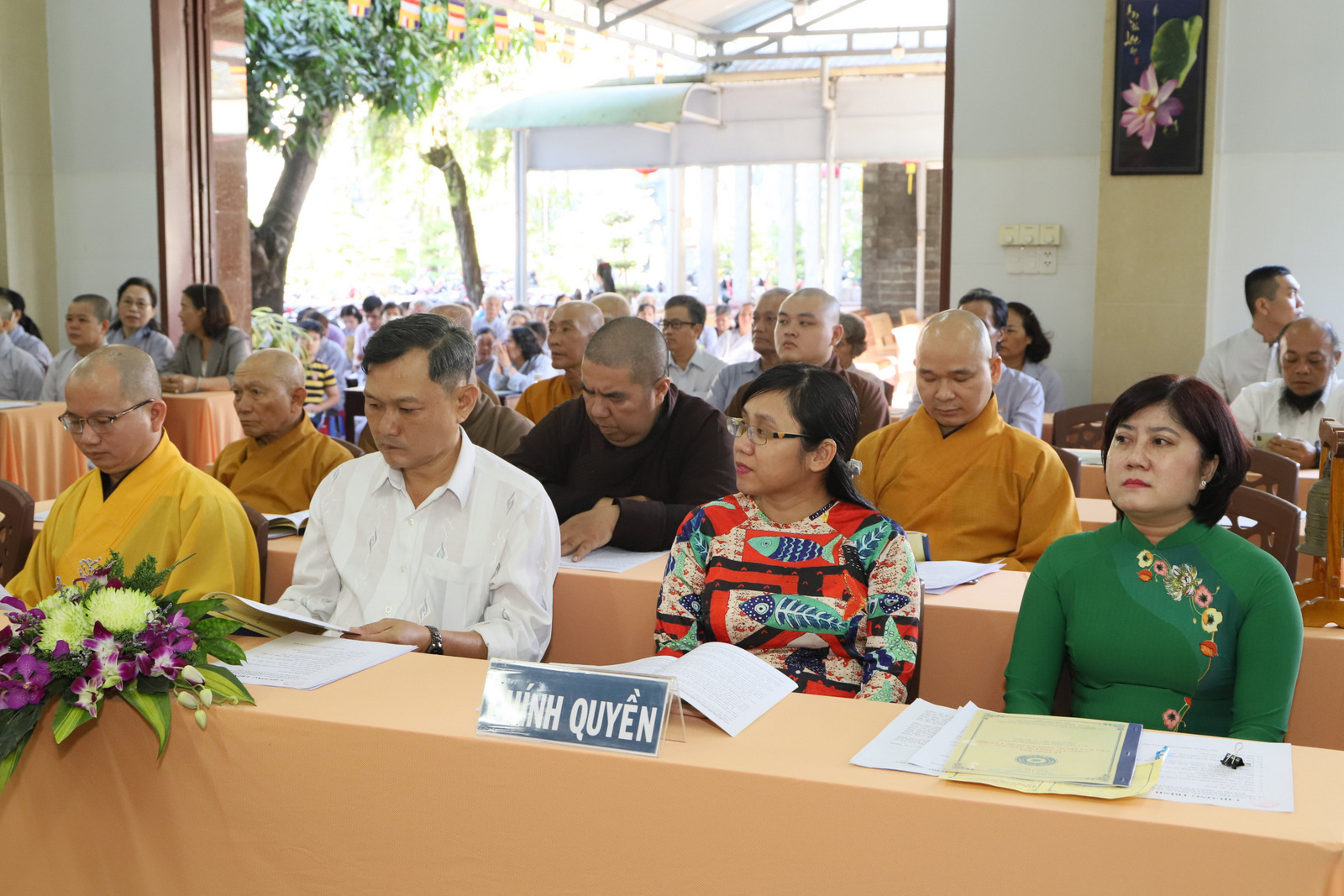 Buổi lễ có sự quang lâm chứng minh của : HT. Thích Huệ Văn – UV HĐTS, Phó Trưởng BTS kiêm Trưởng ban Kinh tế tài chánh GHPGVN, Chứng minh BTS GHPGVN Q. Tân Phú; TT. Thích Thiện Quý – UV HĐTS, Phó Trưởng BTS, Chánh Thư ký GHPGVN TP. HCM; TT. Thích Quang Thạnh – UV HĐTS, Phó Thư ký kiêm Chánh Văn phòng BTS GHPGVN TP. HCM, ĐĐ. Thích Trung Nguyện – UV HĐTS GHPGVN, Phó Thư ký BTS GHPGVN TP. HCM, HT. Thích Thiện Xuân – UV BTS GHPGVN TP. HCM, Trưởng BTS GHPGVN Q. Tân Phú, cùng chư tôn đức Ban thường trực BTS GHPGVN Q.   Tân Phú, các ban chuyên ngành trực thuộc, Tăng Ni trụ trì, nam nữ Phật tử tại các tự viện trên địa bàn Quận về tham dự.