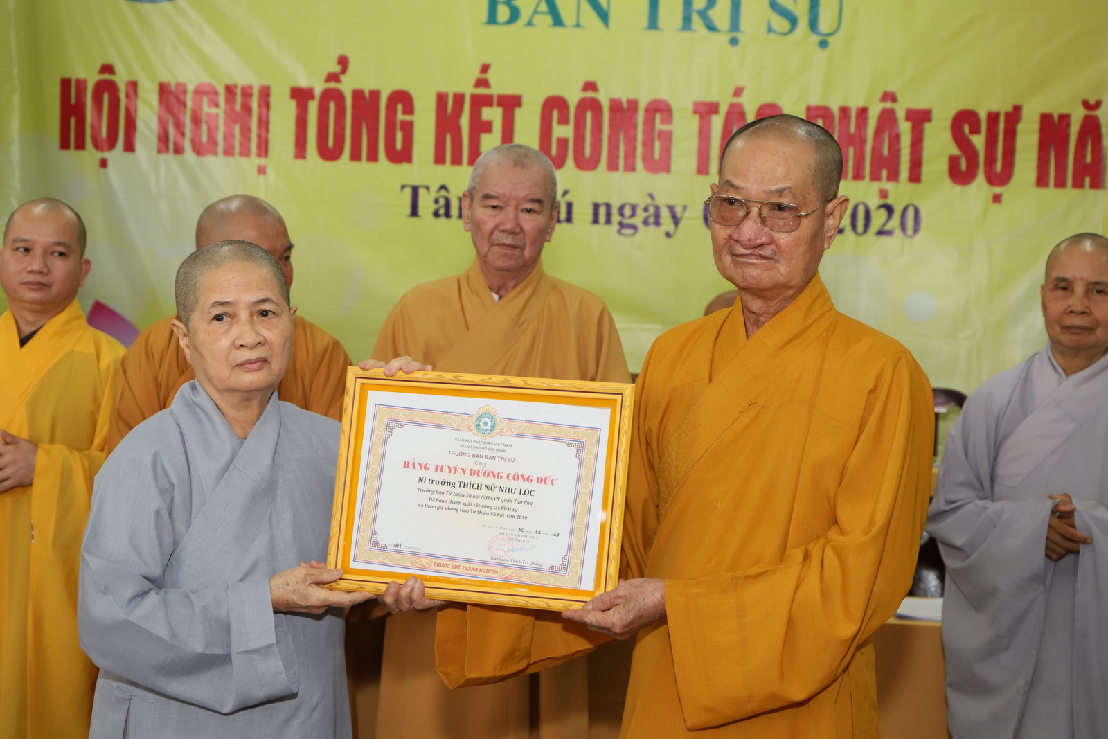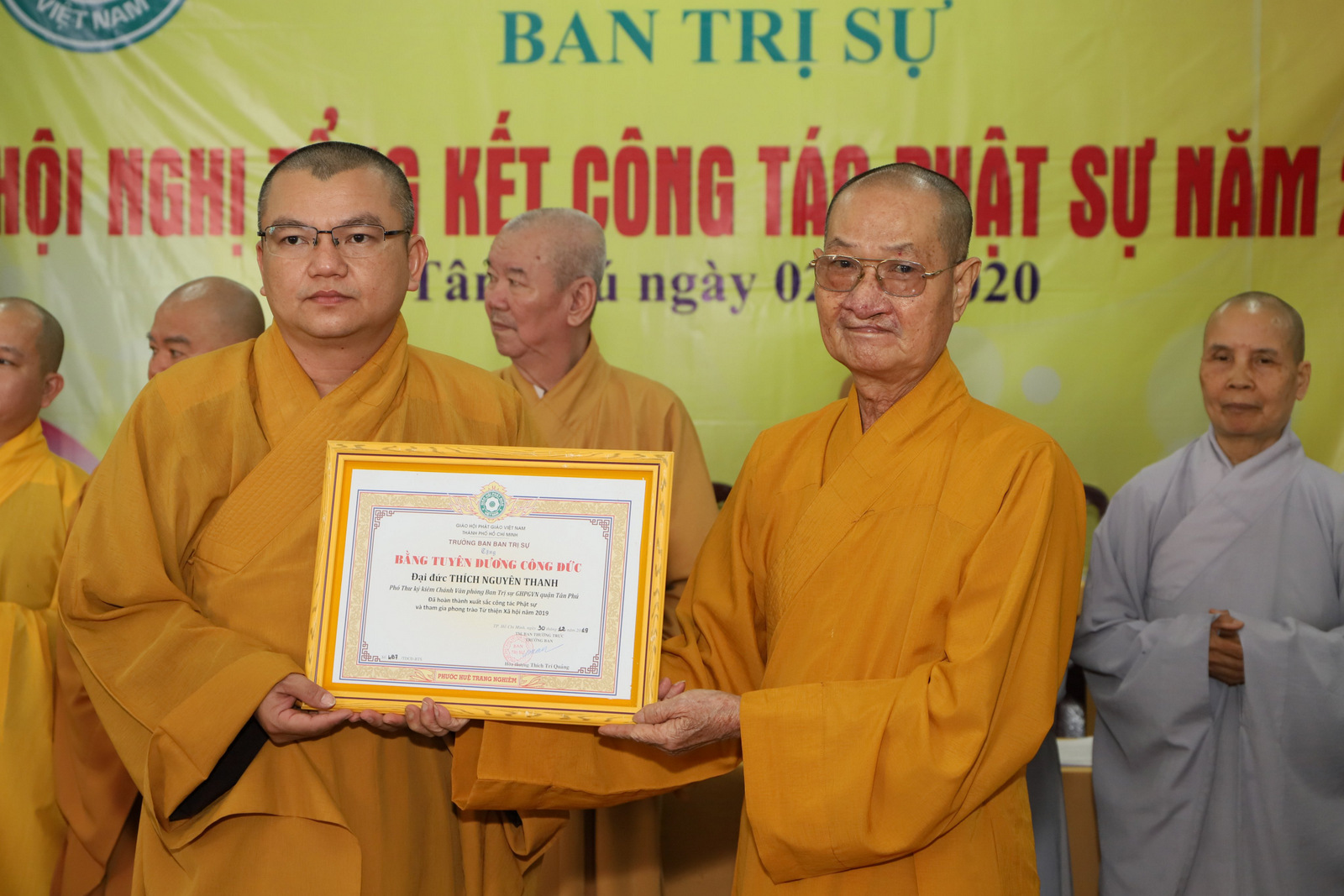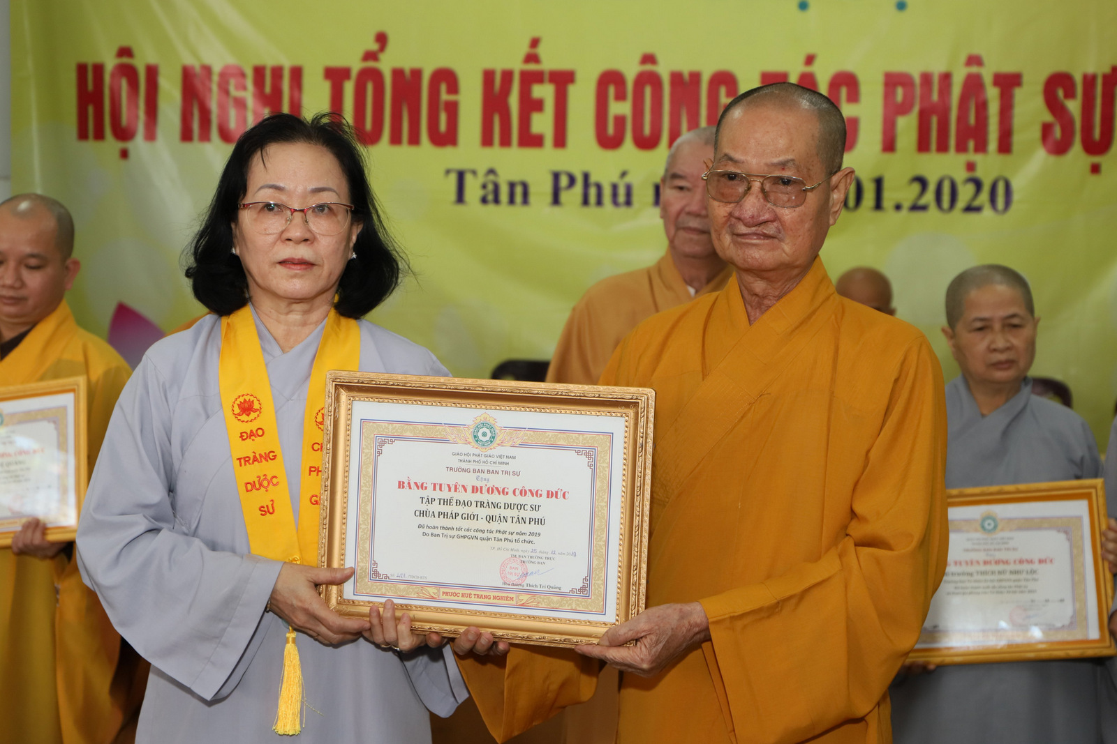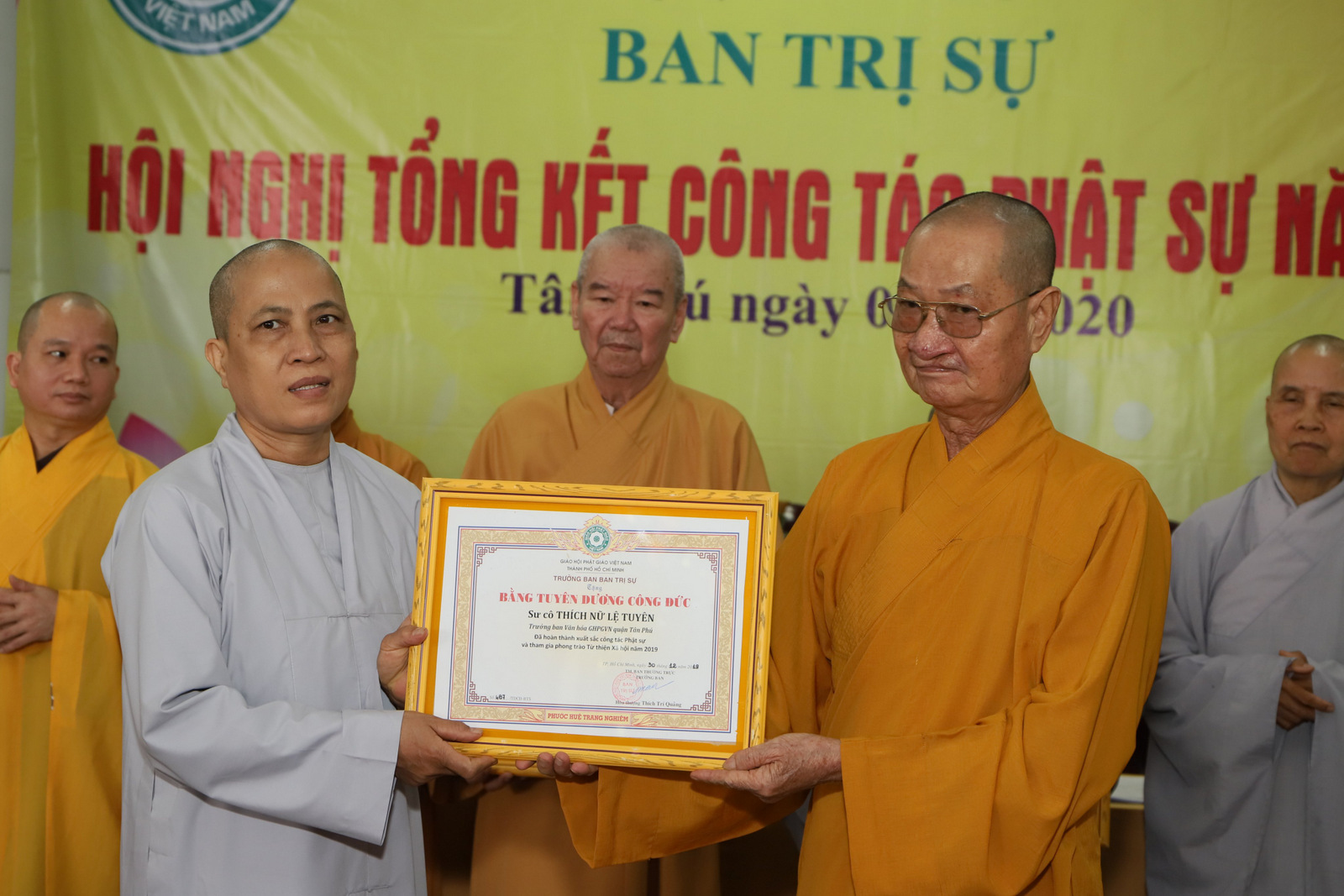 Tại buổi lễ, Ban Thường Trực BTS GHPGVN TP. HCM đã trao Bằng tuyên dương công đức cho các cá nhân, tập thể tích cực đóng góp cho các công tác Phật sự trên địa bàn quận nói riêng và TP.HCM nói chung.