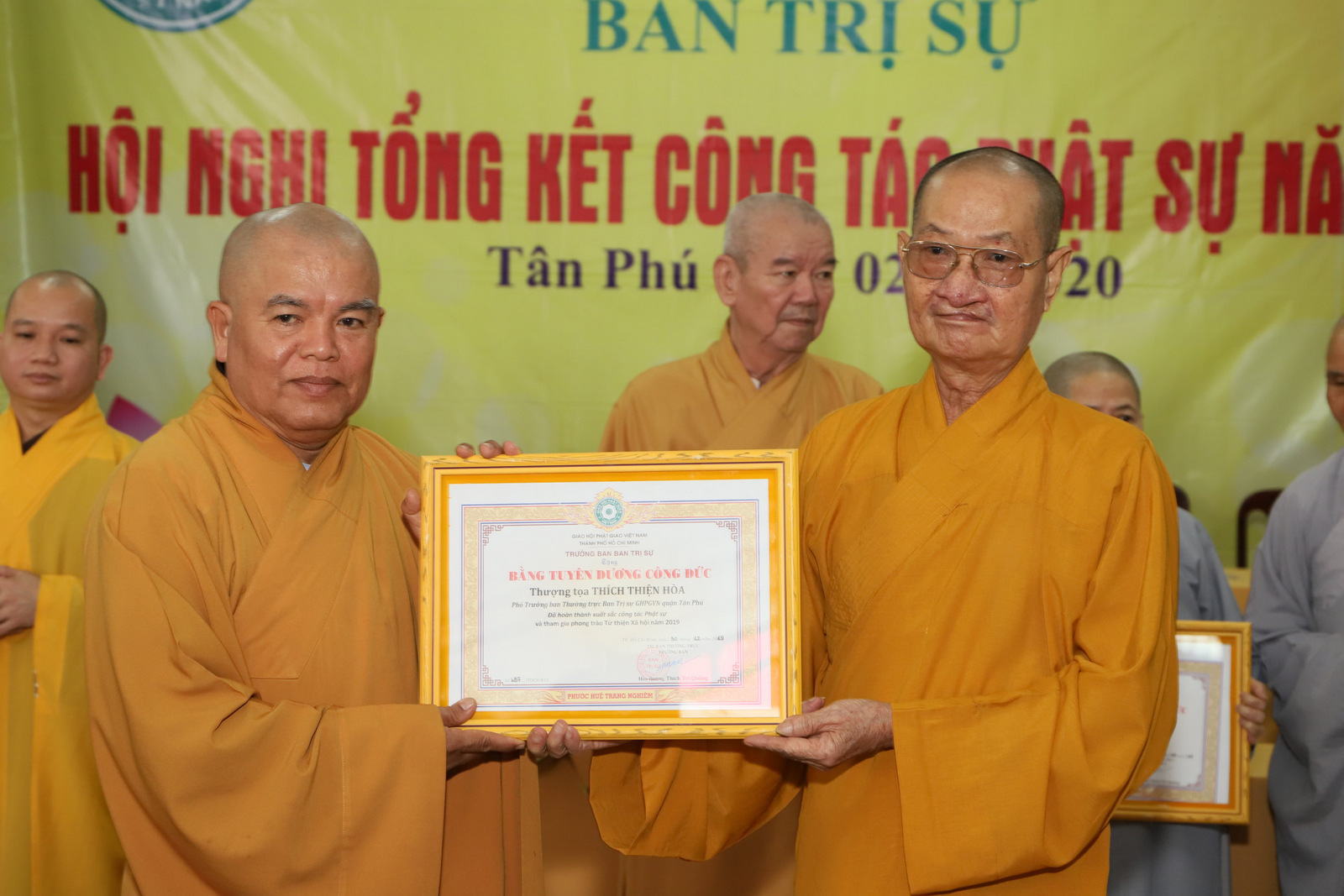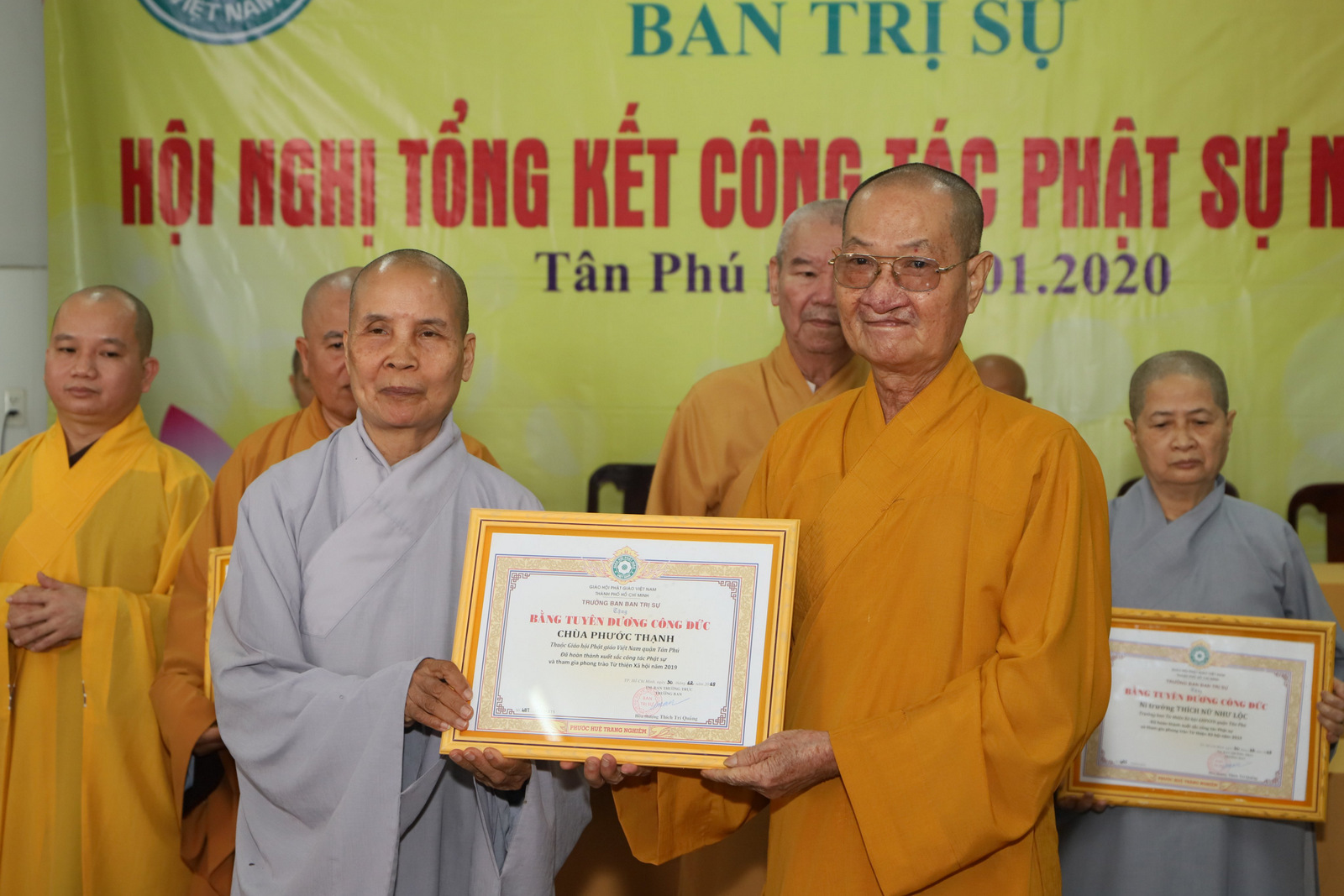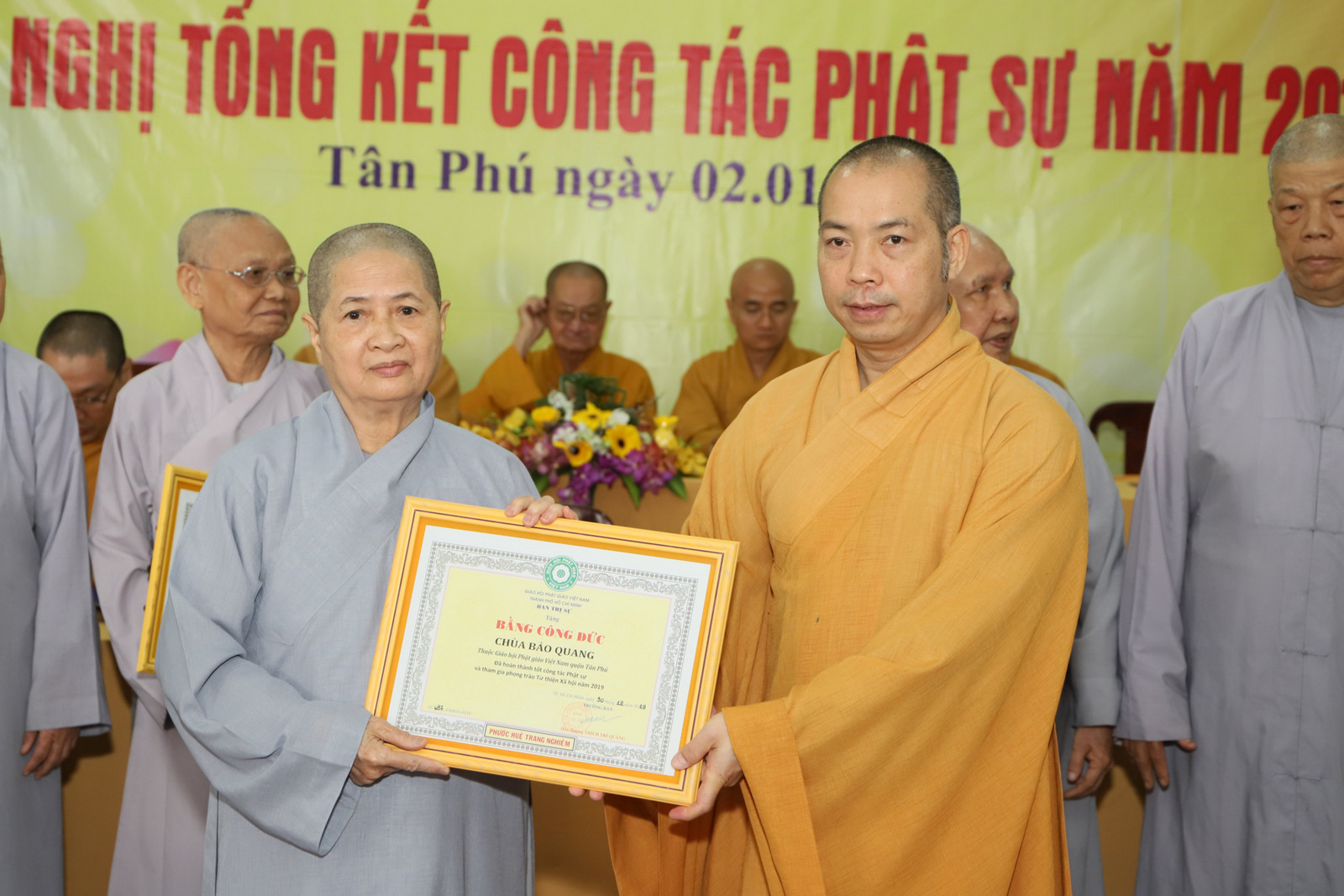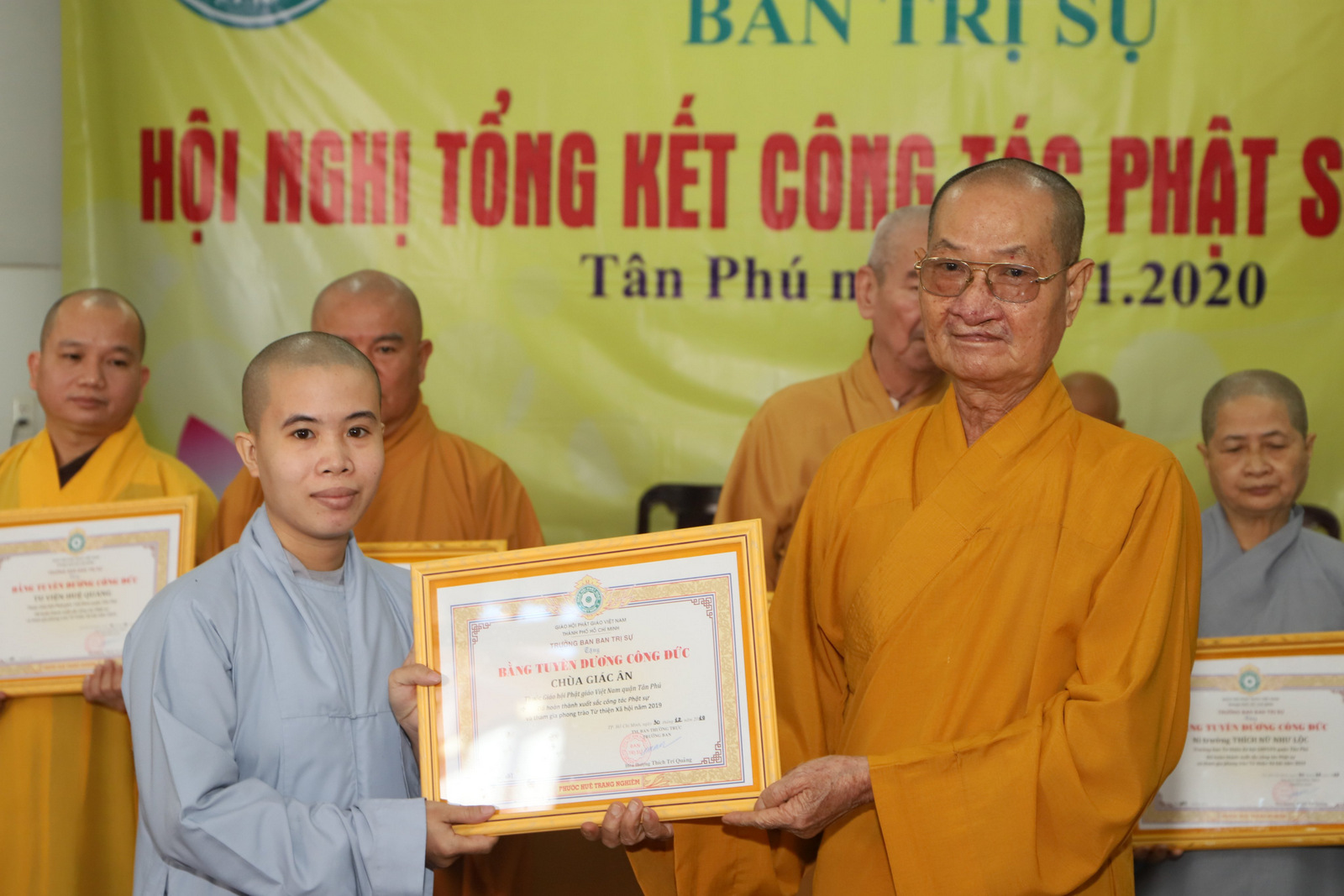 Tại buổi lễ, Ban Thường Trực BTS GHPGVN TP. HCM đã trao Bằng tuyên dương công đức cho các cá nhân, tập thể tích cực đóng góp cho các công tác Phật sự trên địa bàn quận nói riêng và TP.HCM nói chung.