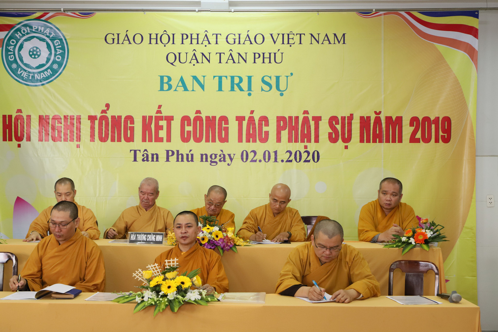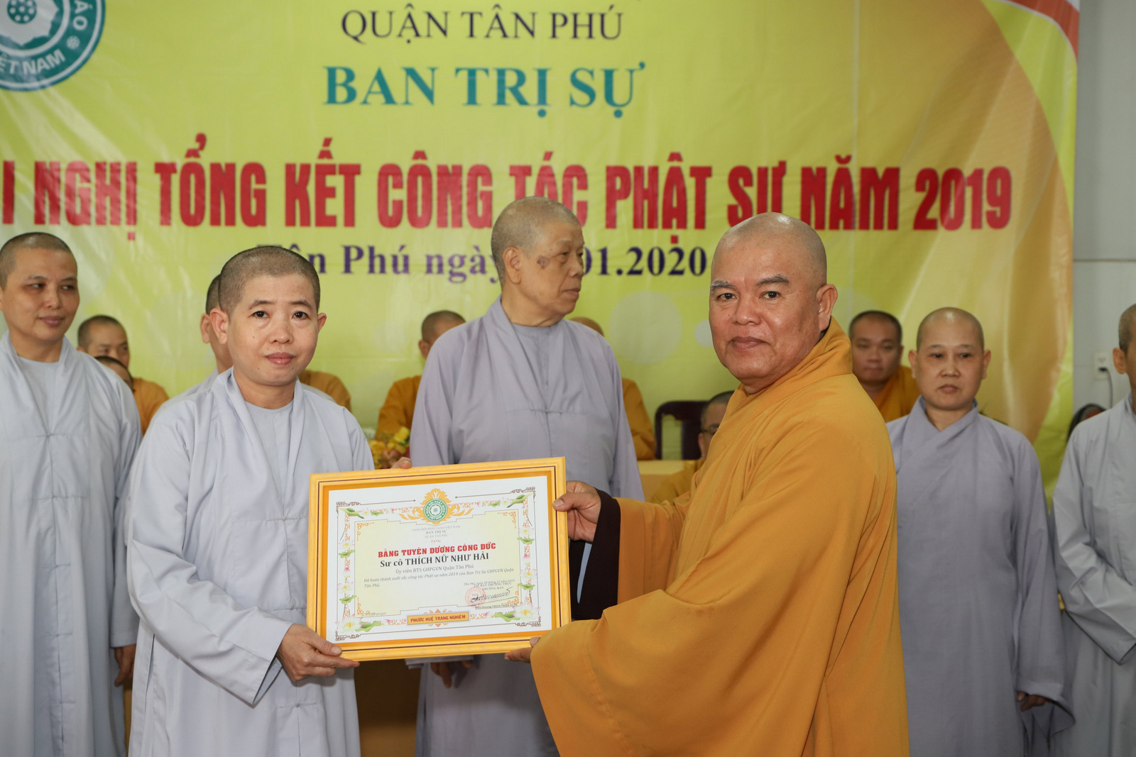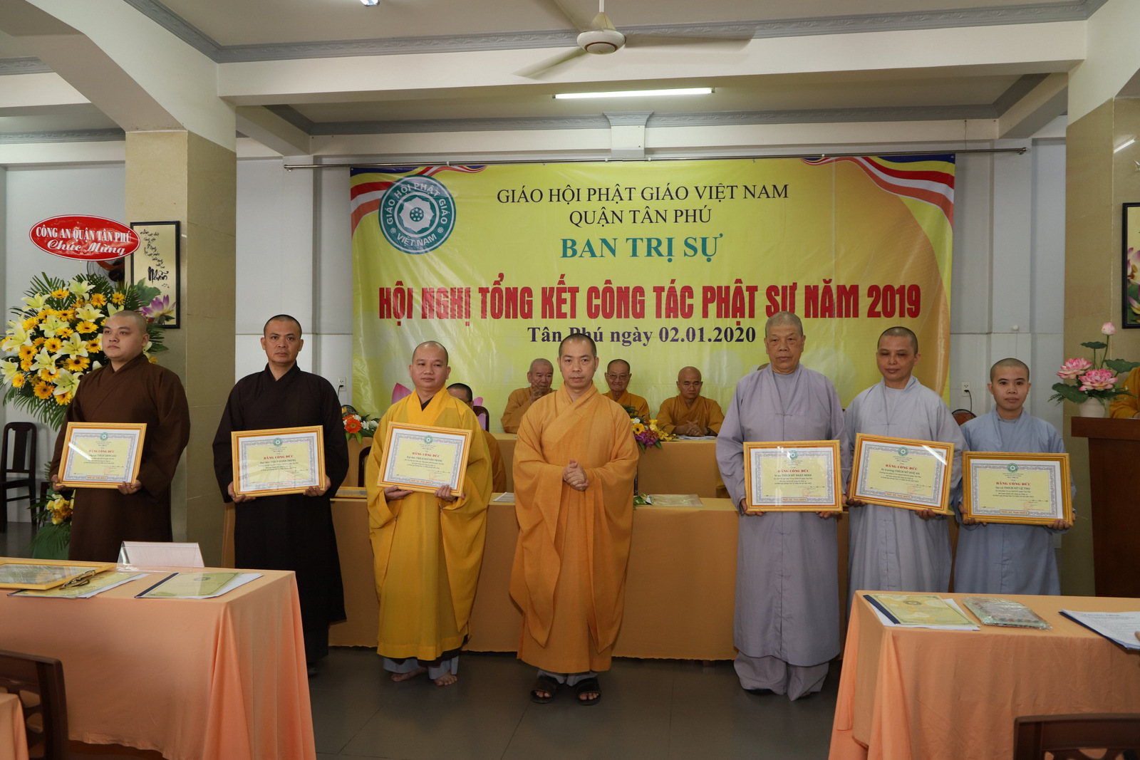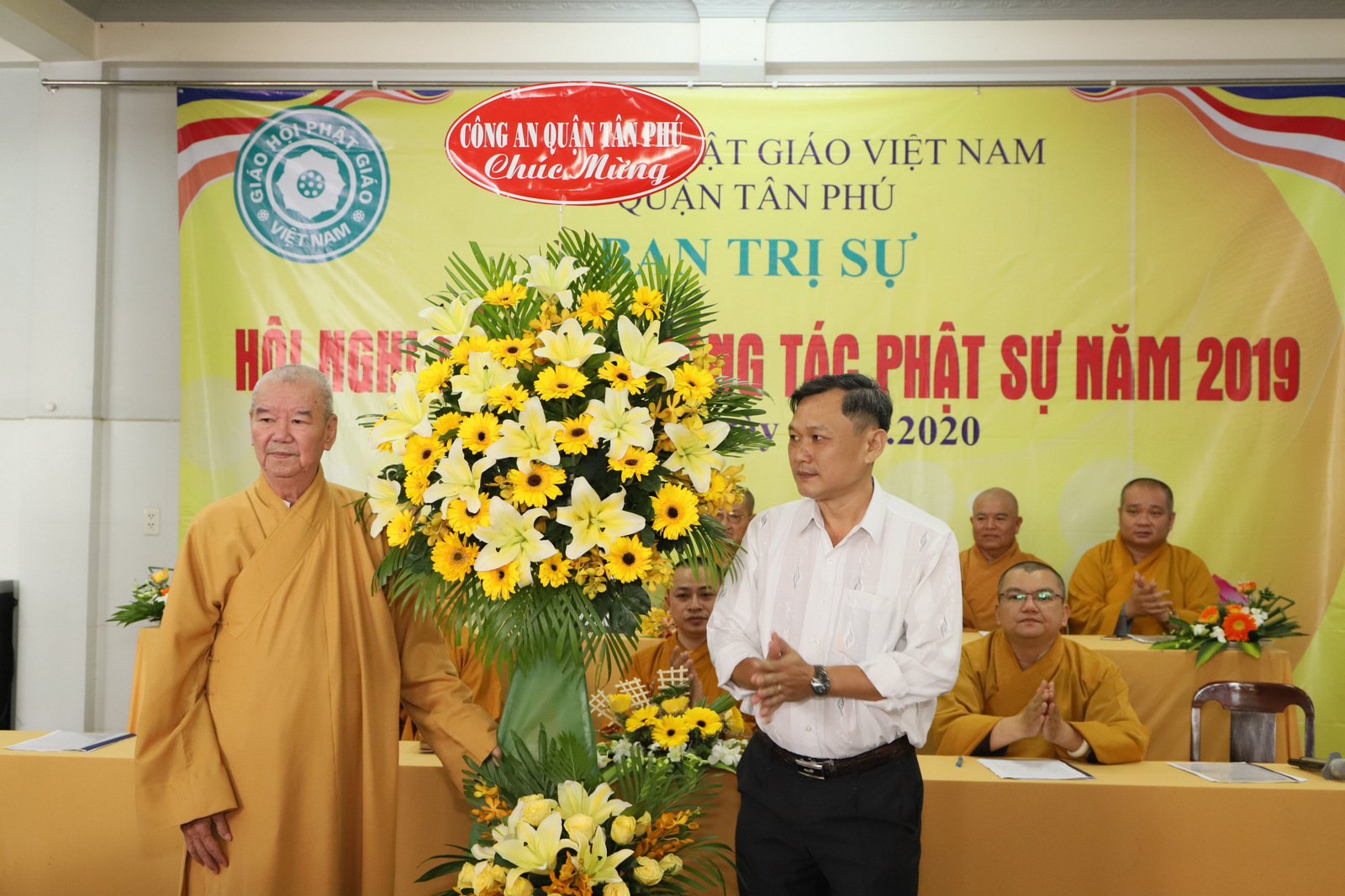 Kết thúc buổi lễ, TT. Thích Thiện Quý – Phó trưởng ban kiêm Chánh thư ký BTS GHPGVN TPHCM tán tán, ghi nhận những thành tựu đã đạt được của chư tôn đức BTS GHPGVN Q. Tân Phú, đồng thời tri ân đến các cấp chính quyền địa phương đã hỗ trợ cho BTS PG Q. Tân Phú trong mọi hoạt động Phật sự đã đề ra.  Thượng tọa hy vọng trong năm 2020, BTS GHPGVN Q. Tân Phú tiếp tục phát huy vai trò, trách nhiệm của mình hoàn thành tốt các kết hoạch Phật sự đã đề ra.