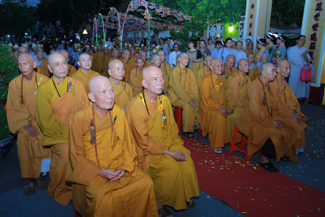 Quang lâm chứng tham dự buổi lễ có HT.Thích Thiện Pháp – Phó chủ tịch TT HĐTS – Trưởng Ban tăng sự TWGH, HT.Thích Tân Đạt – UV TT HĐTS – Phó trưởng ban TT Ban hoằng pháp TWGH, HT.Thích Thanh Hùng – UV HĐTS – Phó trưởng ban TT Ban hướng dẫn Phật tử TWGH, HT.Thích Thanh Sơn – Chứng minh Ban hoằng pháp TWGH – Trưởng BTS Phật giáo Quận 1, cùng chư tôn đức giáo phẩm BTS PG TP.HCM, BTS các quận, và đông đảo Tăng,Ni,Phật tử thuộc các tự viện, tịnh xá, tịnh thất quận nhà đồng tham dự.