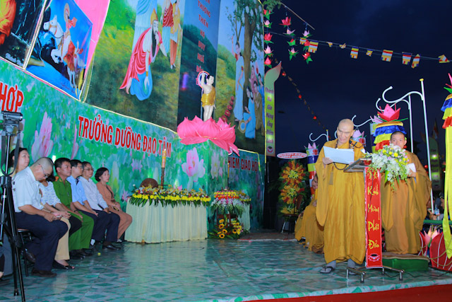 Tại buổi lễ, HT.Thích Thiện Pháp đã tuyên đọc Thông điệp Phật Đản của Đức Pháp Chủ GHPGVN gởi đến Tăng,Ni, Phật tử trong và ngoài nước. Tiếp theo, HT.Thích Thanh Sơn tuyên đọc diễn văn khai mạc Đại lễ Phật Đản của Hòa thượng chủ tịch HĐTS GHPGVN.